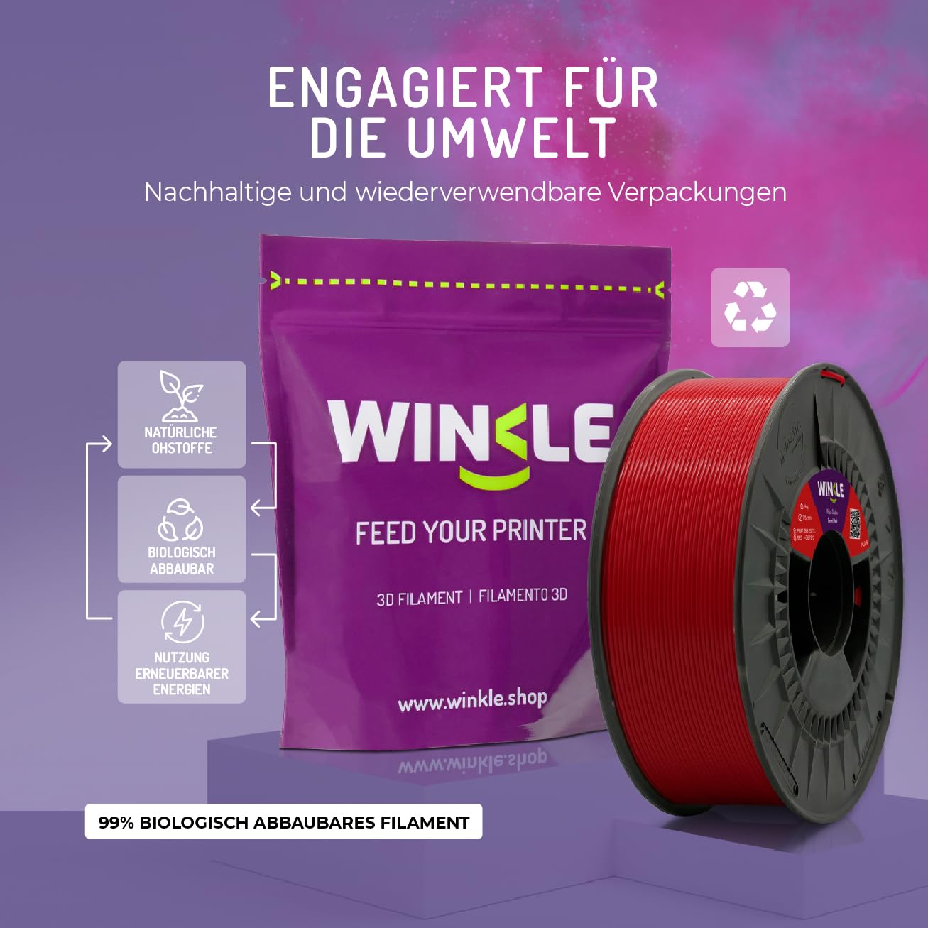 ["PLA HD FILAMENT: The PLA HD filament from Winkle is an excellent choice for your 3D printing projects. With a diameter of 1.75 mm and a weight of 1 kg, this filament ensures stable and precise printing.","DIMENSIONAL STABILITY: Winkle's HD PLA filament is characterized by its excellent dimensional stability, ensuring that your prints maintain their dimensions without deformation. Additionally, its adhesion is optimal, making the printing process easier. The filament available in deep black is versatile and can be used for a variety of projects.","BIODEGRADABLE: Winkle HD PLA filament is biodegradable and sustainable, making it an environmentally friendly choice. It is also a non-toxic material and can therefore be safely used in any environment.","MADE IN EUROPE: Made in Europe. This filament is manufactured according to strict quality standards certified to ISO 9001, ISO 14001, and the rigorous REACH regulations.","PRINTING RECOMMENDATIONS: For best results, a nozzle temperature of 190-230°C and a bed temperature of 50-70°C are recommended. Be sure to follow your 3D printer's instructions for optimal printing."]