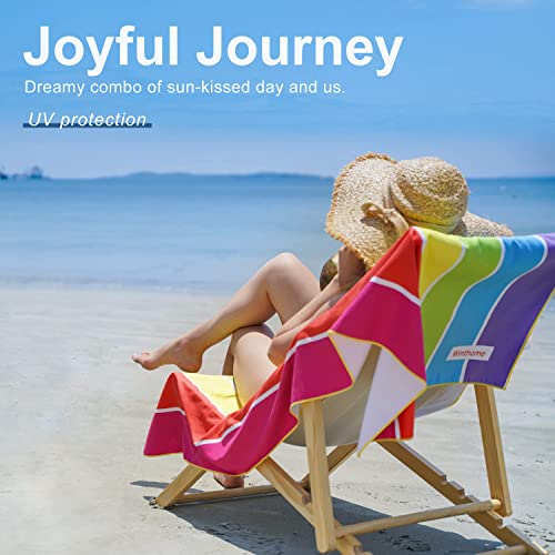 Winthome beach towel quick-drying - microfiber beach towel lightweight, sand-free large beach towel, versatile for women men travel vacation swimming camping, with bag (rainbow, 150x75cm, 1 pack)