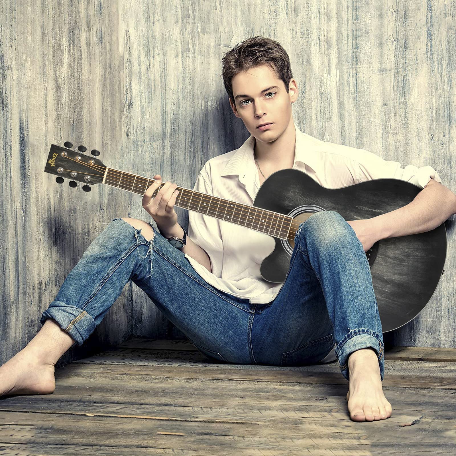 Winzz Left-handed Acoustic Guitar, Beginner Set for Adults Kids with Capo, Chord Cards, Stand, Tuner, Pick, Strap, Bag (40 inch, Matte Black)