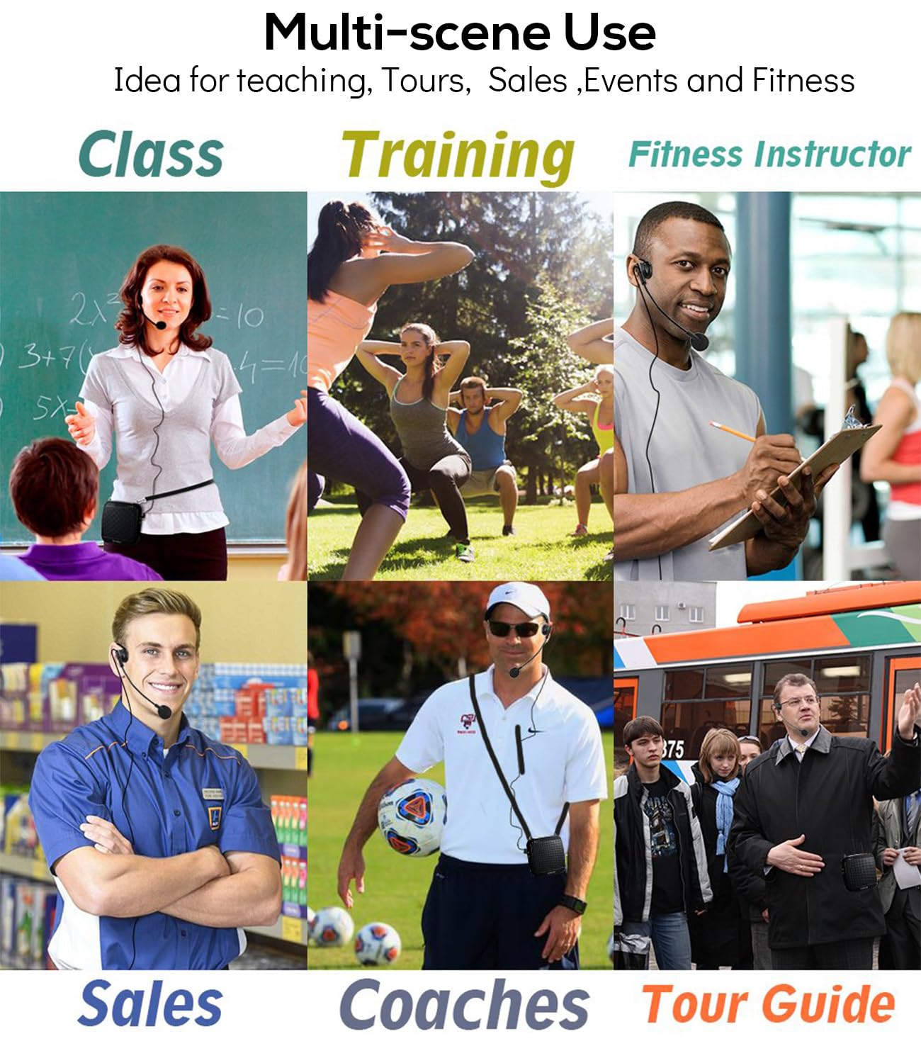 ["【Voice Amplifier with Microphone】: The sound of a 10W voice amplifier is sufficient to be heard in a classroom with 25 to 100 people. This portable microphone and speaker offers high volume and low feedback. It is a great voice amplifier for teachers, tour guides, fitness trainers, and anyone who needs to enhance their sound.","【Portable Voice Amplifier Long Battery Life】: The mini voice amplifier features a powerful 2000 mAh lithium-ion battery that can provide up to 12 hours of operating time on a full charge. It only takes 3 to 5 hours to fully charge it.","【Portable Speaker with Microphone】: compact voice amplifier with powerful headset microphone. The simple plug-and-play design allows you to use the microphone instantly with the speaker, without worrying about pairing or connectivity, for a worry-free life.","【Lightweight and Easy to Use】: The portable microphone and speaker is compact, stylish, and easy to carry. With the attached strap, this lightweight portable microphone can be easily worn around the waist or hung around the neck.","【Usage Tips】: 1. Place the microphone in front of your mouth to achieve maximum amplification. 2. Do not whistle: Keep a certain distance between the microphone and the speaker, preferably face to face. It's best to wear a headset, attach the amplifier's speaker to your waist, turn it on, and then gradually increase the volume as needed."]