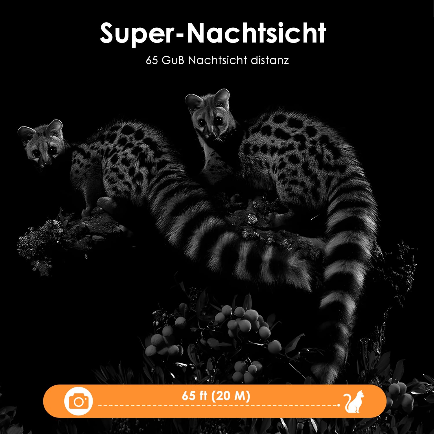 "5200 mAh battery and solar panel for long runtime: This trail camera features a powerful 5200 mAh battery that automatically charges via solar energy - perfect for remote areas without power. Three charging options (solar, power adapter, power bank) make it environmentally friendly and cost-effective. Comes with a 32GB SD card, strap, and mount - ready to use.","WiFi trail camera: Equipped with WiFi and Bluetooth technology for minimal power consumption. This camera also has a user-friendly "TrailCam GO" app for sharing files anytime. (Note: Does not need to be connected to home WiFi.)","High-quality images, less storage: Captures 48MP photos and 1296P videos with sound to capture wildlife and surroundings sharply. H.264 compression saves up to 80 % storage space without compromising quality. Videos are in MP4 format and playable on all devices.","Wildlife camera with night vision motion sensor: The ultra-sensitive motion sensor reacts within 0.1 seconds, capturing any animal entering its field of view.","Advanced technology allows clear images with night vision capability, capturing activities without disturbing animals. Great for observing and recording secret behaviors."