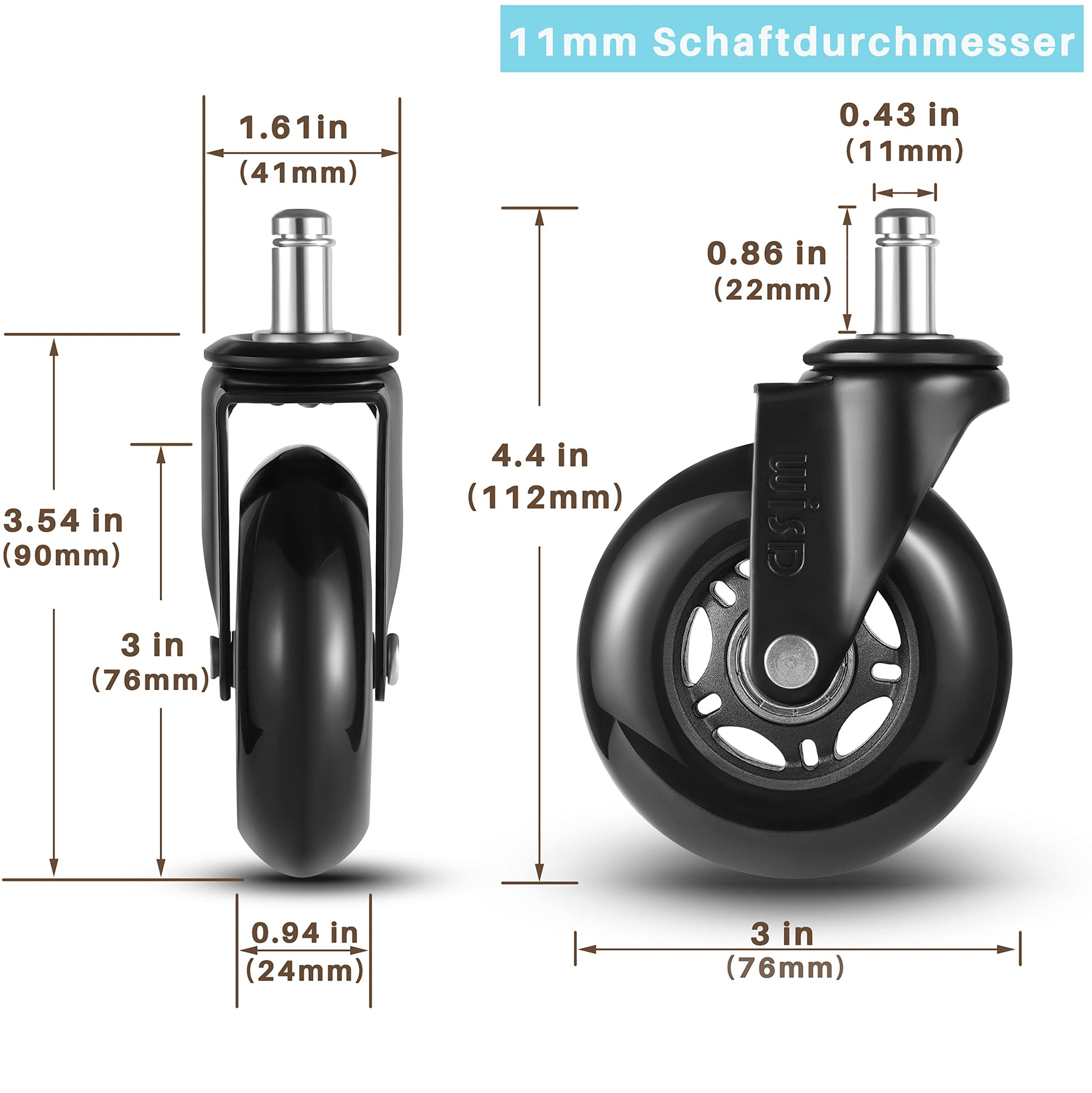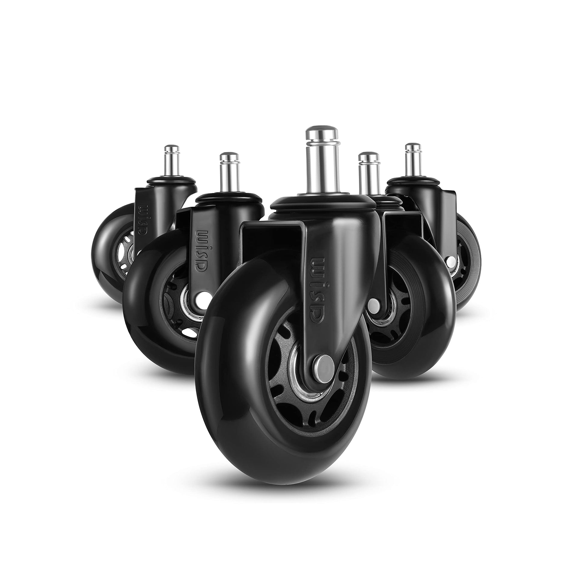 WISD Office Chair Wheels 5-Pack, Hard Floor Casters for Office Chair, 11mm x 22mm Stem, Quiet & Scratch-Free Heavy Duty Rubber Casters for Desk Chair, Universal Fit (Not for IKEA)