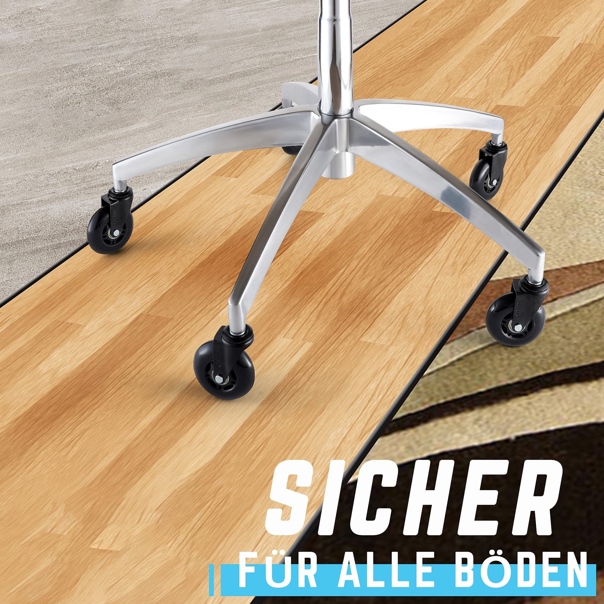 [Safe for all floors]: No chair mat needed! Soft polyurethane material on our office chair casters will not scratch, dent, or leave marks on your floors, guaranteed. Best choice for hardwood, wood, laminate, vinyl, tile, and carpet floors at all times.