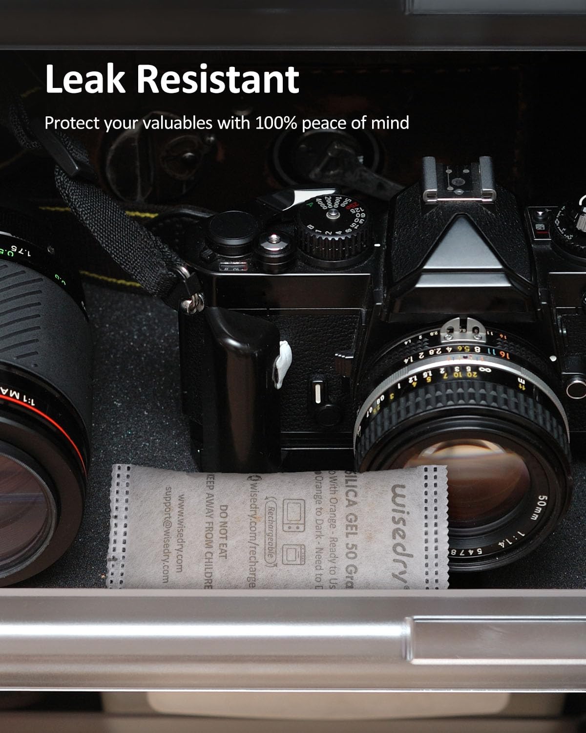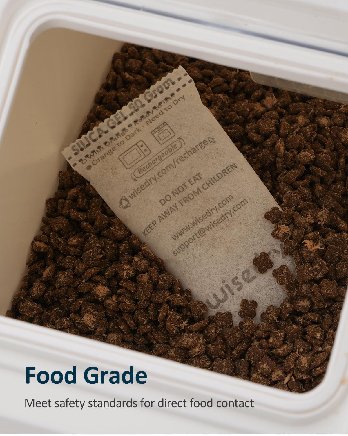 ["✅ - [Quickly Reactivated, Reusable] 2 minutes quick reactivated in the microwave. A normal desiccant pack may need hours to dry.","✅ - [Moisture Indicating Desiccant] Contains orange silica gel to quickly notify users when the desiccant needs recharging or replacing. Orange crystals turn black-green when increasingly saturated with moisture.","✅ - [Safe Double Packing & Easy Storage] vacuum-sealed inside, an outer sealed aluminum foil zipper bag to protect desiccant packs from moisture before use. Unused bags can also be easily stored.","✅ - [Food Grade Silica Gel] - with high moisture absorption up to 35% of its weight. Cobalt chloride-free, non-toxic, no harm, no pollution, safe for food and pharmaceuticals. Suggest using orange silica gel instead of blue.","✅ - If you are not satisfied with us, contact wisedry's customer service team directly for a quick solution at any time"]