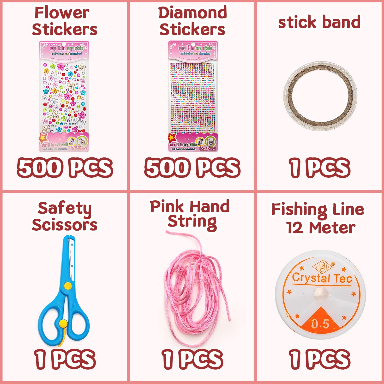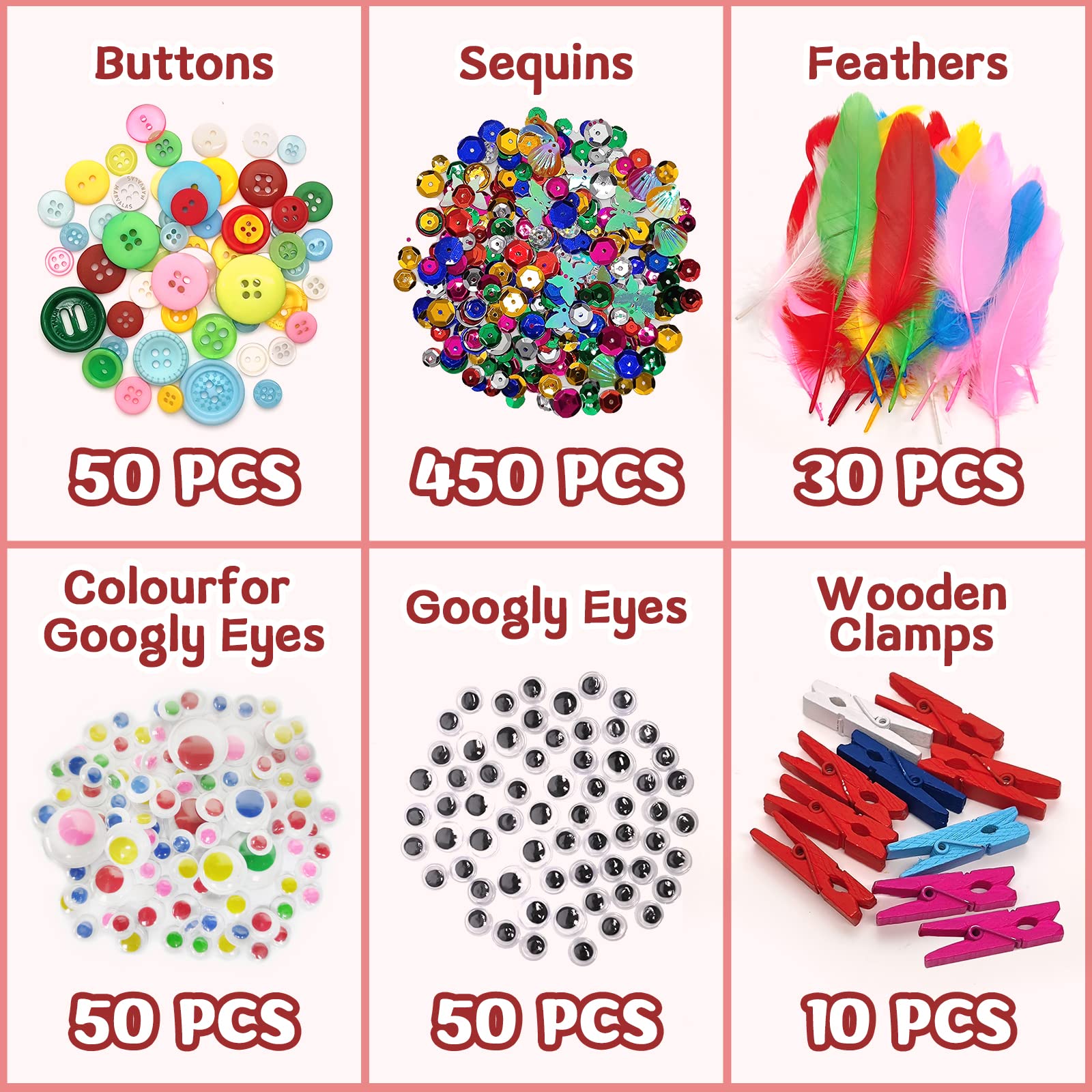 ["【DIY Craft Supplies Kit】There are 2200+ PCS including 1000 x diamond stickers, 450 x sequins, 150 x pom poms, 100 x papers, 50 x craft papers/googly eyes/eyelash colors/buttons/round beads/letter beads/colorful pipe cleaners/golden pipe cleaners/wooden sticks, 30 x heart beads/feathers, 26 x foam flowers/foam letters, 10 x wooden clips, 1 x stick ribbon, 1 x safety scissors, 1 x pink hand string, 1 x fishing line 12 meters.","【EASY STORAGE BAG】Your Withosent craft supplies kit for kids comes in a super handy, reusable PVC bag with buttons. Perfect for easy storage, convenient transportation, and easy clean-up. Ideal for scrapbooking and other crafts.","【Reusable for Easy Storage】- The craft case for crafts comes in a reusable zippered bag designed for easy, convenient storage.","【Infinite Creativity】Crafting is very beneficial for children. It can stimulate the brain and help improve concentration, memory, and patience. This is a good helper for success in school!","【Perfect Gift】All boys and girls would love to receive this amazing craft gift! Show them on special children's days like birthdays, New Year, holidays, etc. this set of exquisite toys. (The toy contains sharp and tiny parts. Not suitable for children under 3 years old.)"]
