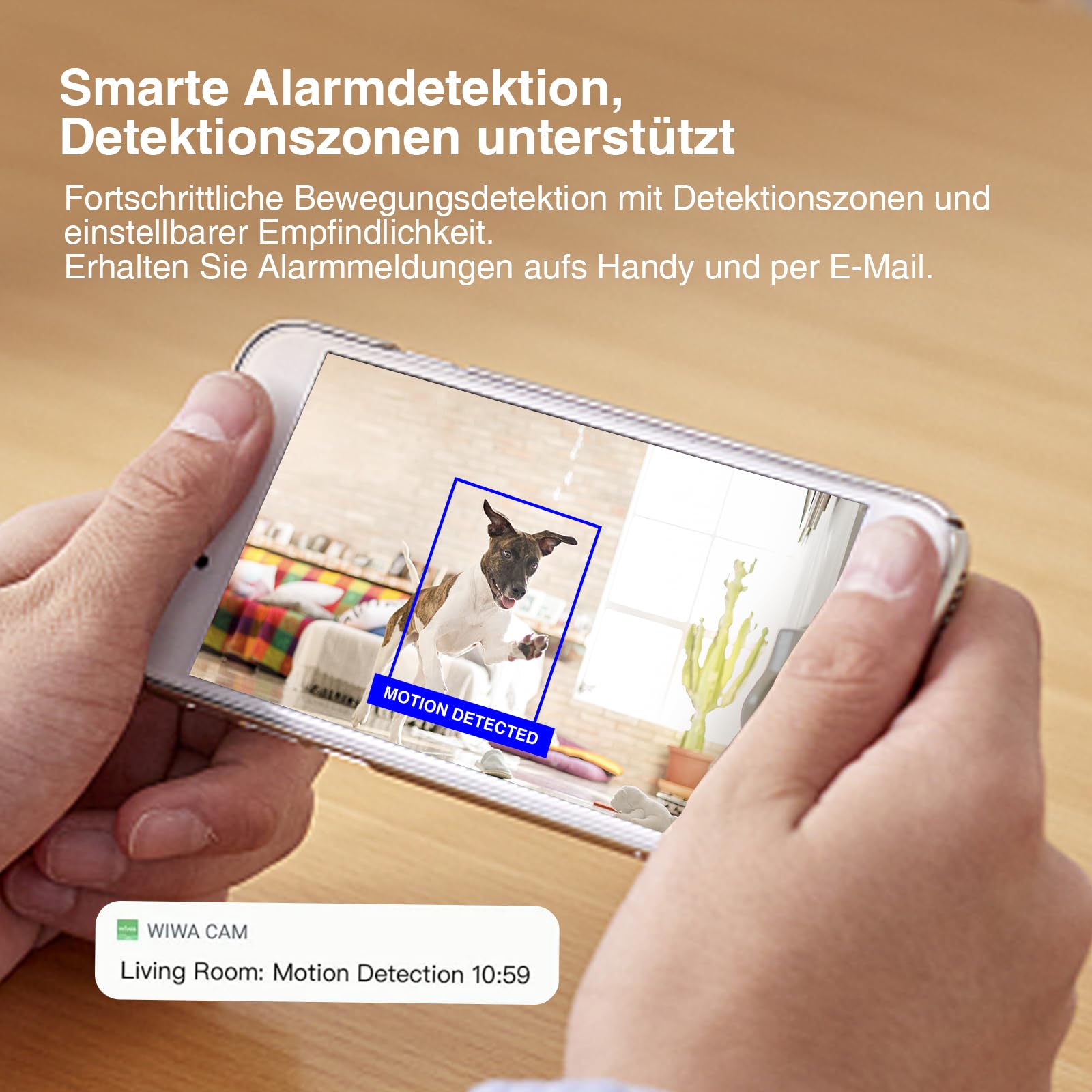 ["Intelligent detection with adjustable detection and sensitivity zones"] This mini camera supports intelligent motion detection with adjustable sensitivity. Up to 3 detection zones can be set to avoid false alarms, excluding high traffic areas.