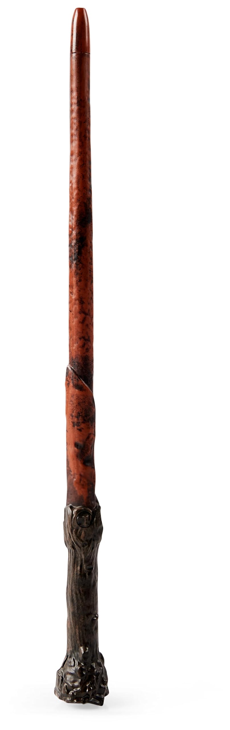 ["Official Harry Potter wand with Patronus Light Projection: Project Harry's stag Patronus onto a smooth surface/wall and play pretend spells","The perfect accessory for magical adventures in the Wizarding World: Press and hold the button, the wand vibrates, lights up, and projects Harry's stag Patronus on the wall","The ideal gift for Harry Potter fans and children aged 6 and up who love to dive into imaginative adventures","Approximately 33 cm long, requires 3 LR44 batteries (included)","Contents: 1 wand, 1 instruction manual","Also available: Hermione Granger's Patronus Light Wand with Otter Projection"]
