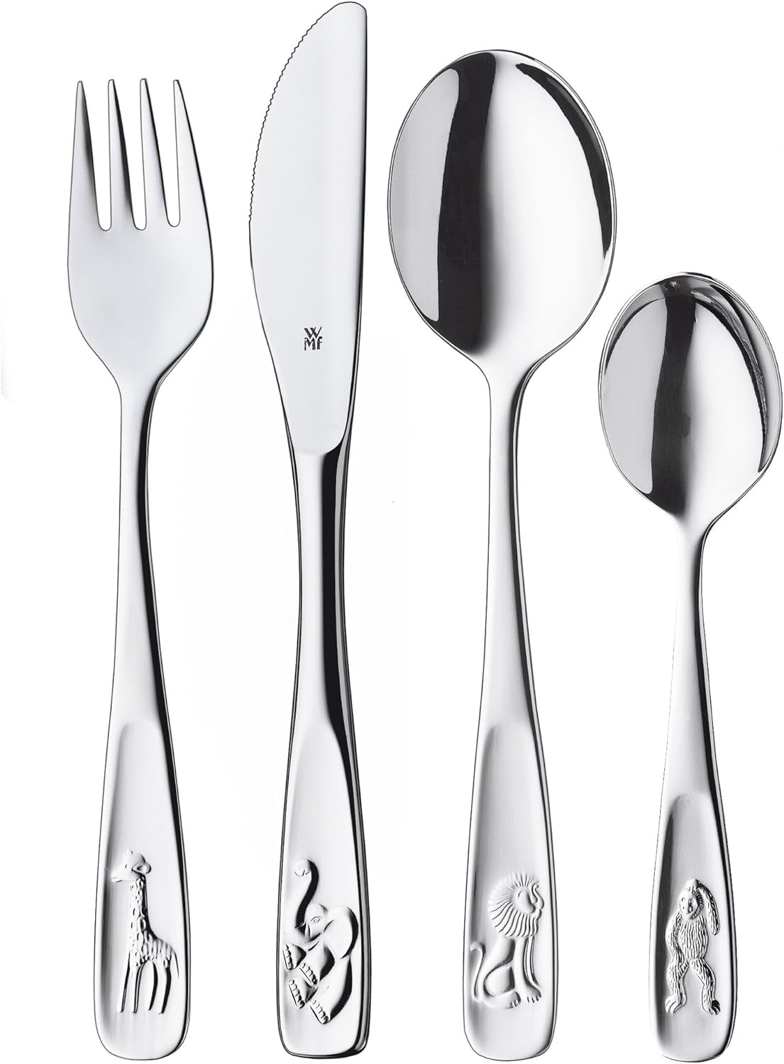 WMF Animal Kids' Cutlery Set 4-piece & Sloth Kids' Cutlery Set 4-piece, kids' cutlery stainless steel, suitable for children age 3 and up, polished Cromargan, dishwasher safe