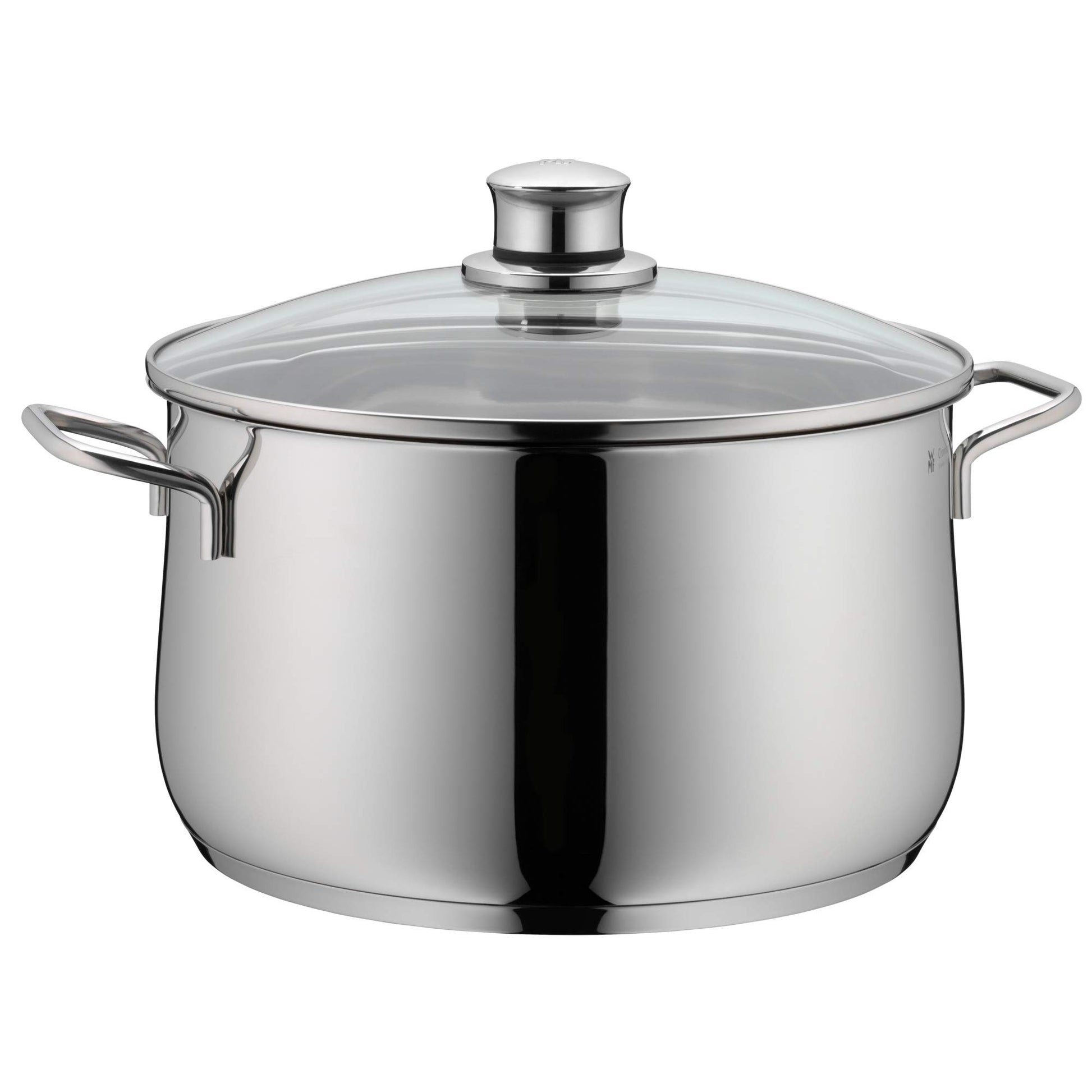 WMF Diadem Plus Stewpot large 24cm, glass lid, induction meatpot 6.5l, polished Cromargan stainless steel, uncoated