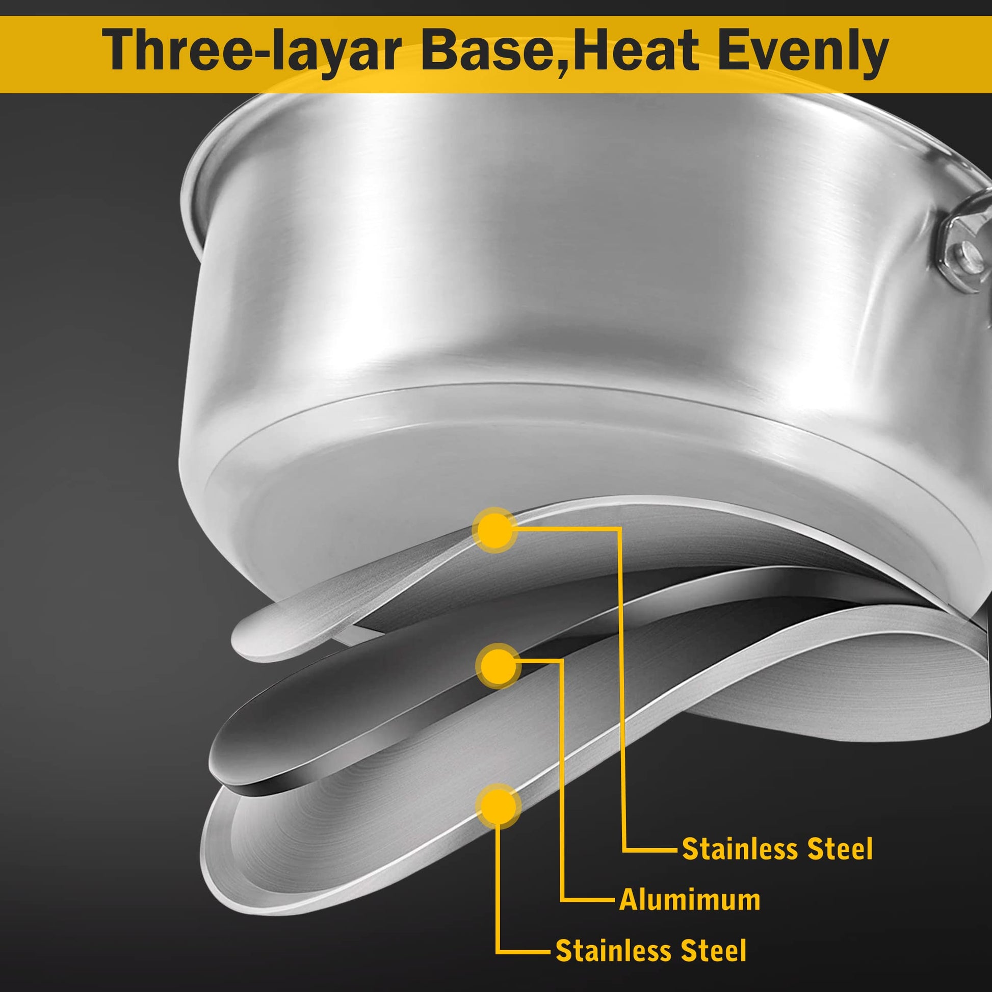 ✅【Highly Polished Stainless Steel】The 3-layer structure ensures optimal heat distribution and quick heating of the cookware. Uncoated to guarantee your health and ensure no reaction with food that could affect the taste of cooking.