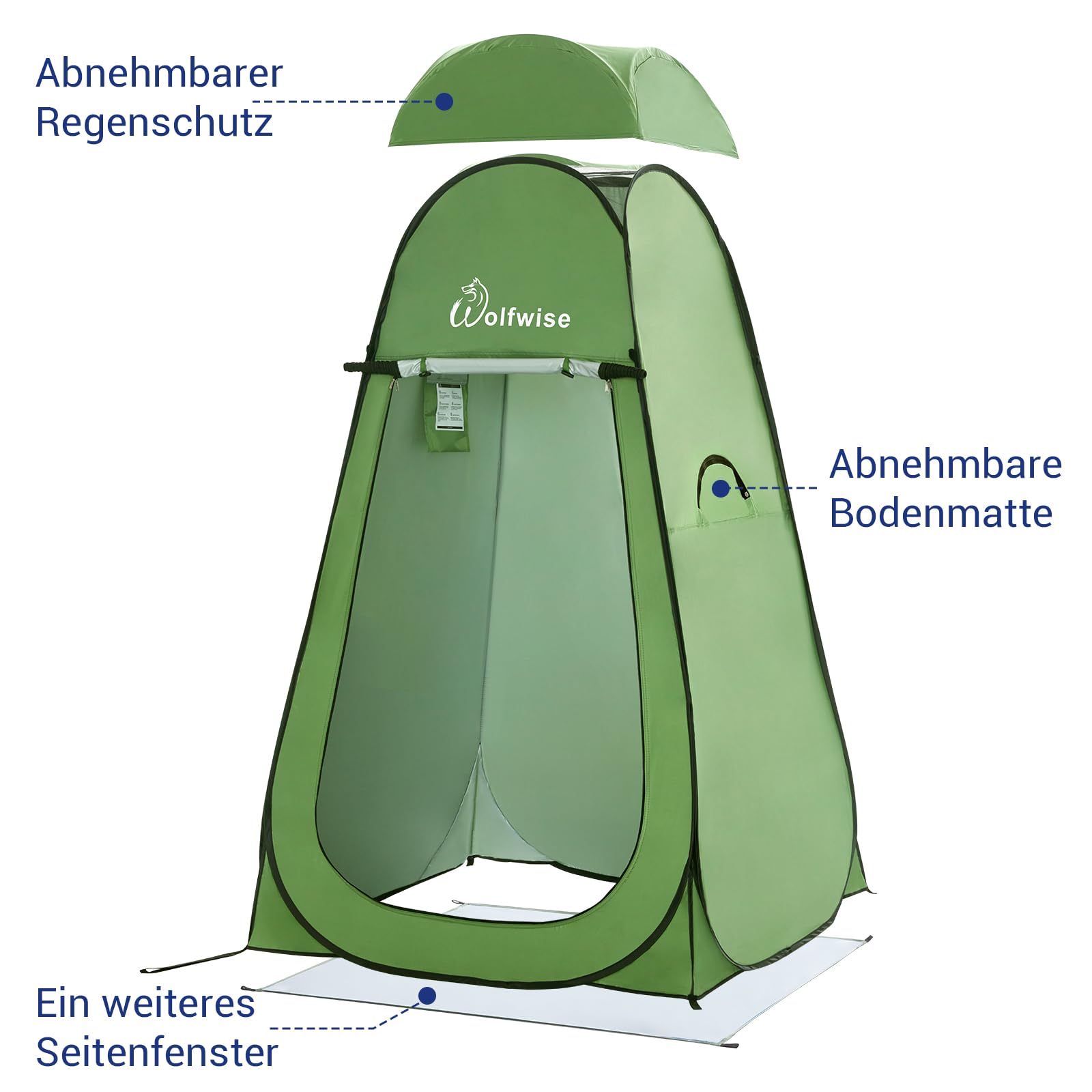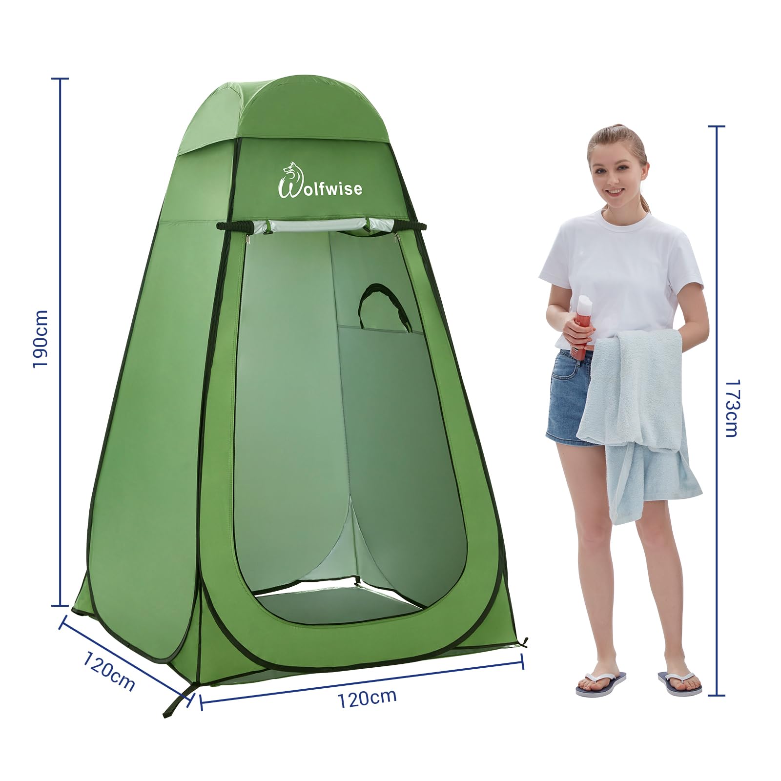 WolfWise Pop-Up Shower Tent UV Protection, Toilet Tent, Changing Room, Portable Camping Shower Cabin Toilet Tent Mobile Changing Room Outdoor Toilet Tent, Spacious Private Tent Camping Tent for Hiking Beach Green