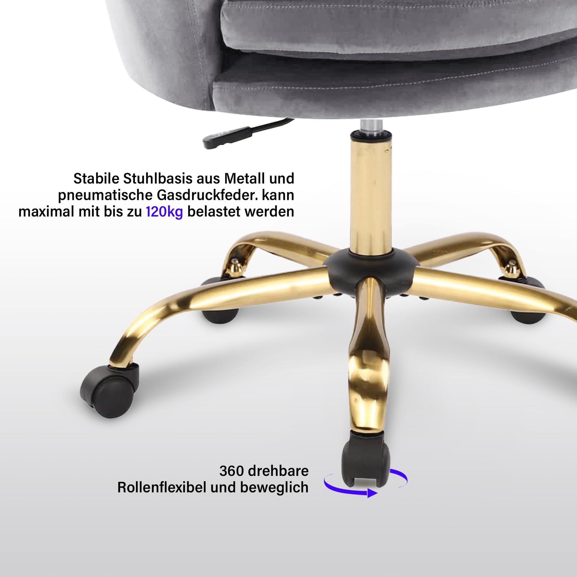 Velvet material for maximum comfort: The velvet fabric of this office chair is durable and tear-resistant. When getting up, the fabric remains smooth and does not stick to clothing. The surface of the velvet is dirt-repellent, and stains do not easily penetrate. Simple cleaning with a damp cloth restores cleanliness. Compared to cotton fabrics, maintenance is ten times easier, so you don't have to worry as much about daily cleaning.