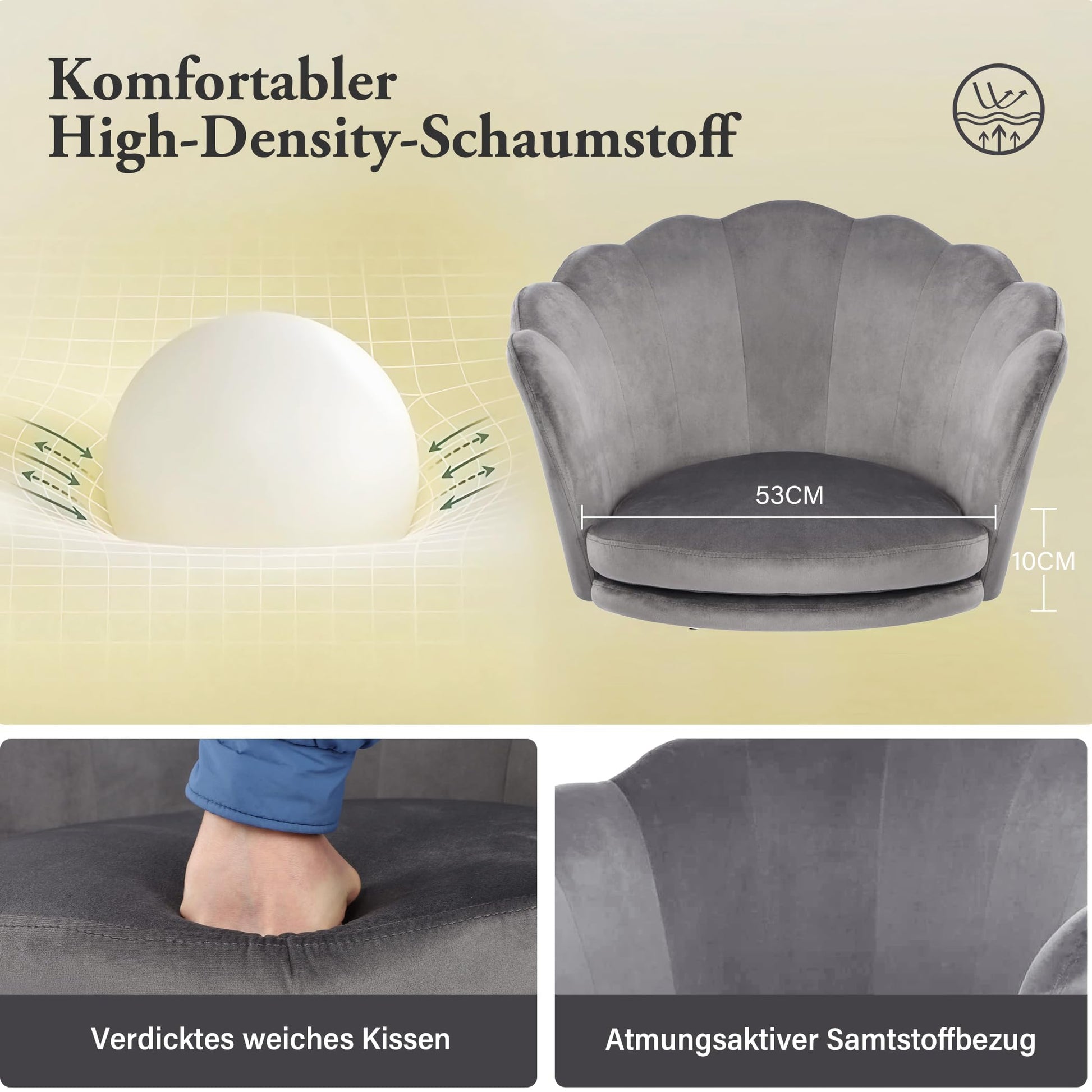 Easy assembly – saves time and effort: Assembling this shell chair is straightforward and can be completed in just 30 minutes if you follow the instructions. Whether you are at home or in the office, even without DIY experience, you can quickly assemble the chair and save a lot of time. Ideal for quick use as an office chair or as a comfortable makeup vanity chair.