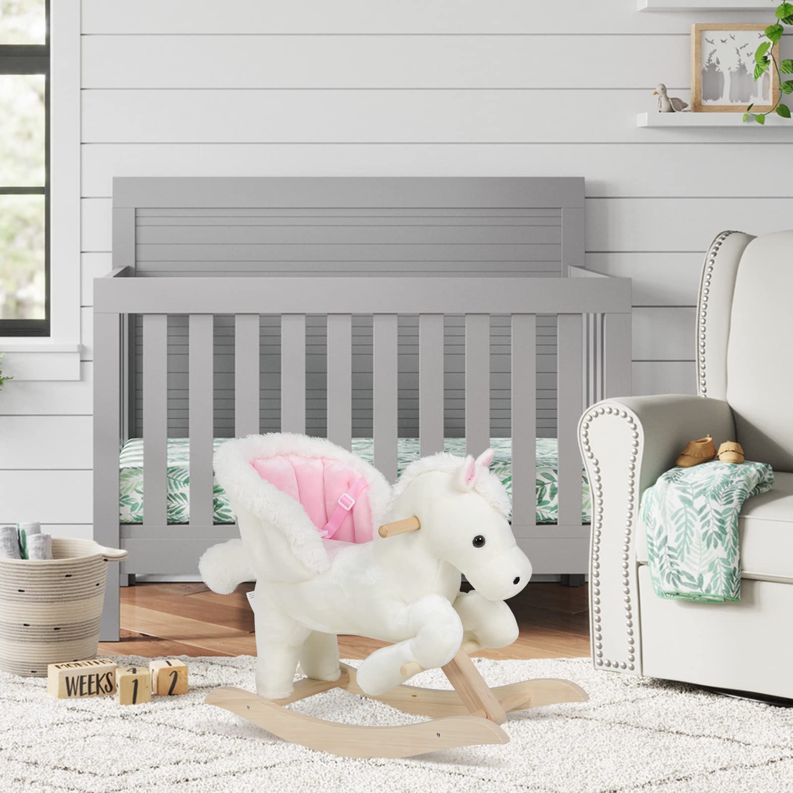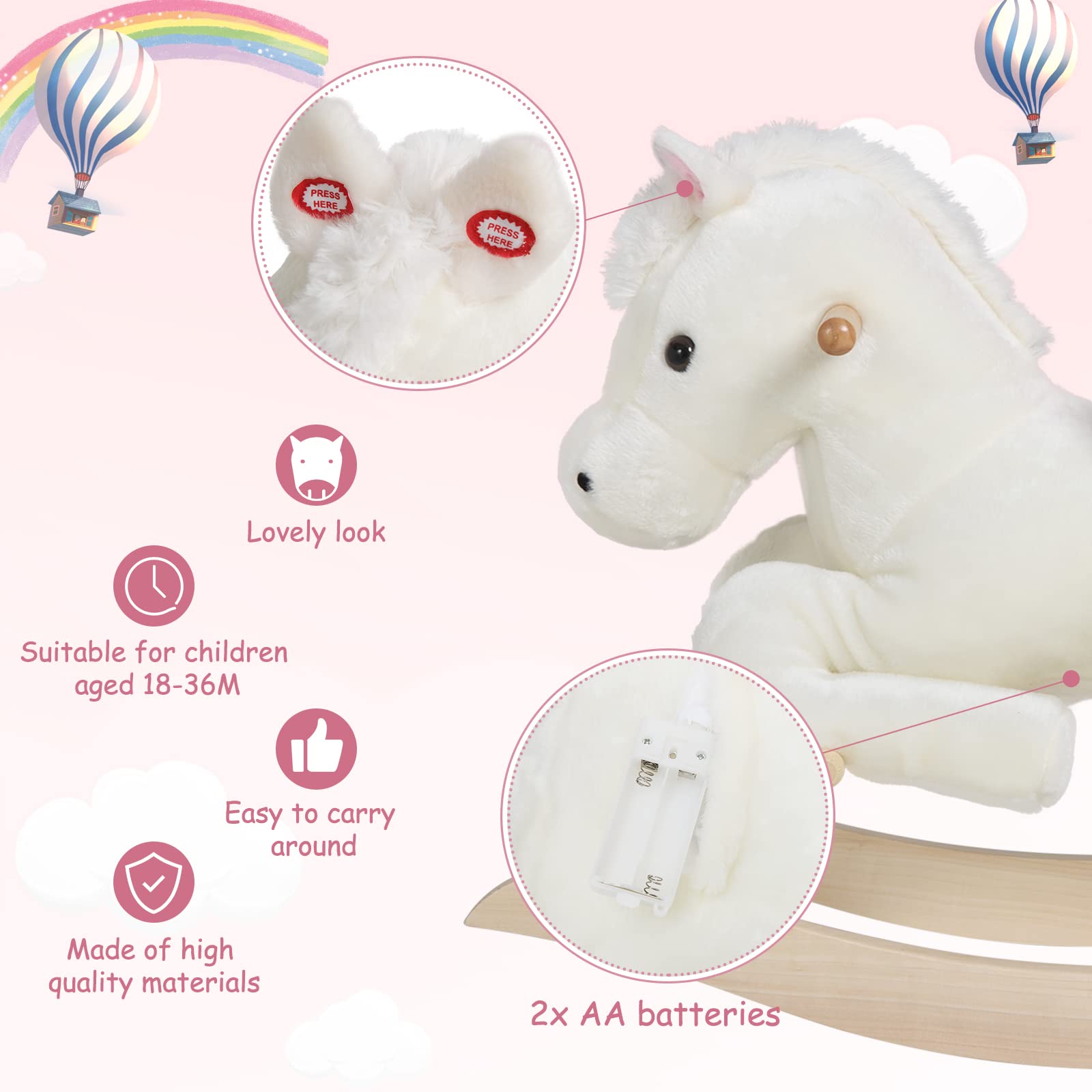 WOLTU Baby Rocking Horse Rocking Animal Rocking Seat Plush Rocking Toy with Strap, PP Cotton, White+Pink
