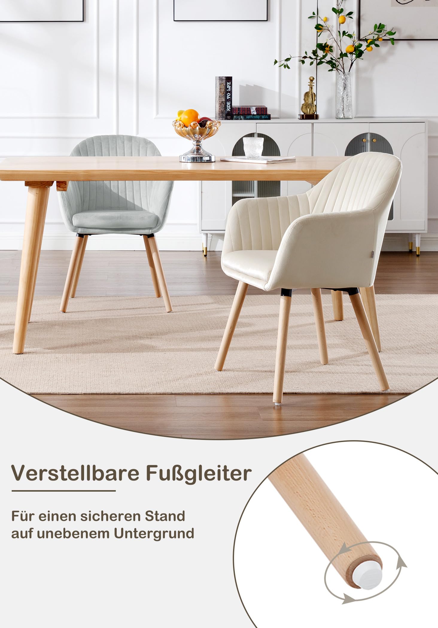 WOLTU dining chairs set of 2, for bedroom kitchen living room, upholstered kitchen chairs with armrest, made of velvet solid wood, cream white