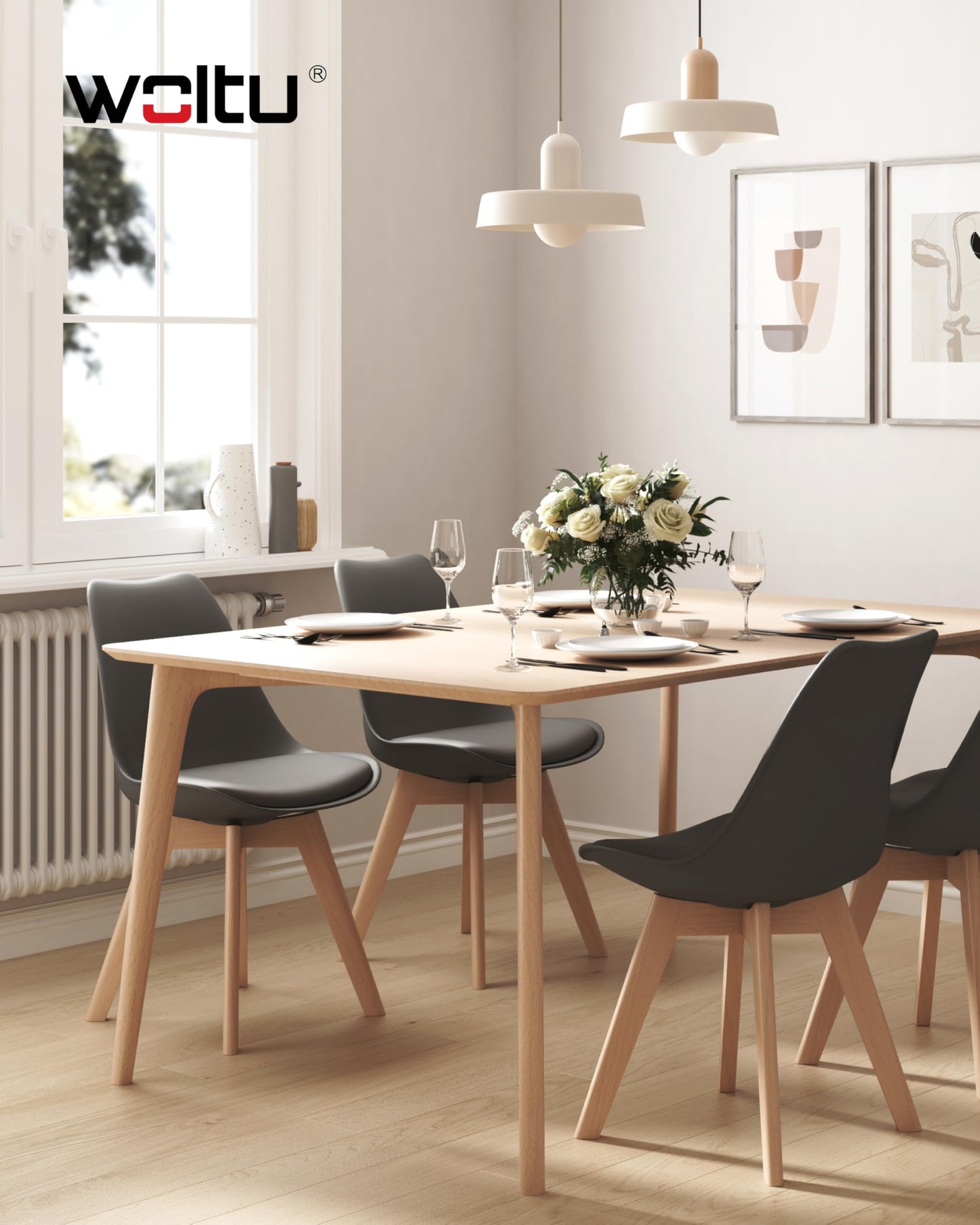 WOLTU Dining Chairs Set of 4, Scandinavian Kitchen Chairs Retro Design, Seat made of faux leather, with solid wood legs, load capacity up to 150 kg, Gray