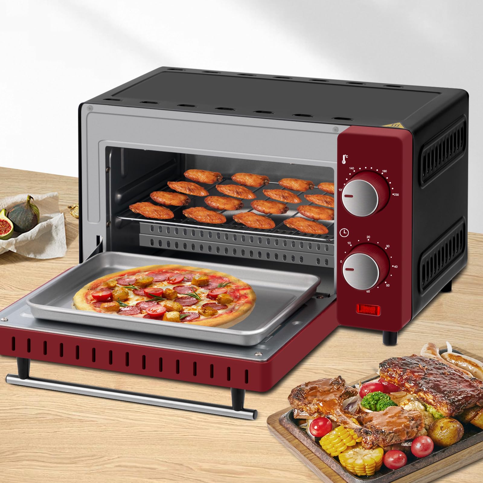 WOLTU Mini Oven 10 Liters, 650 Watts Toaster Oven, small electric oven, 100-230 °C, 60 min., top and bottom heat, with baking tray, grill grate, and detachable handle, red+black.