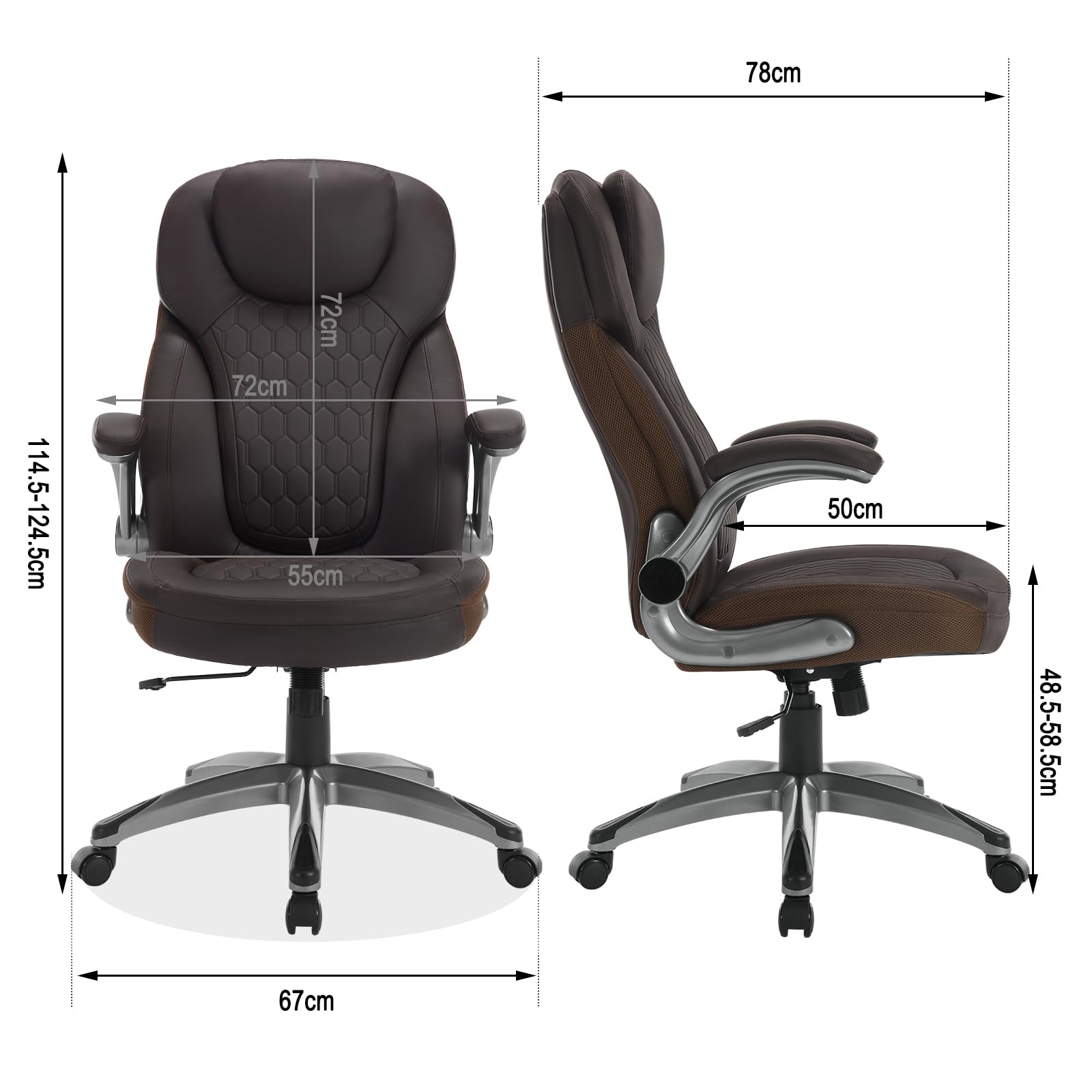 WOLTU office chair 200kg, ergonomic desk chair, executive chair with headrest armrests, height adjustable office chair for office conference room, faux leather, brown