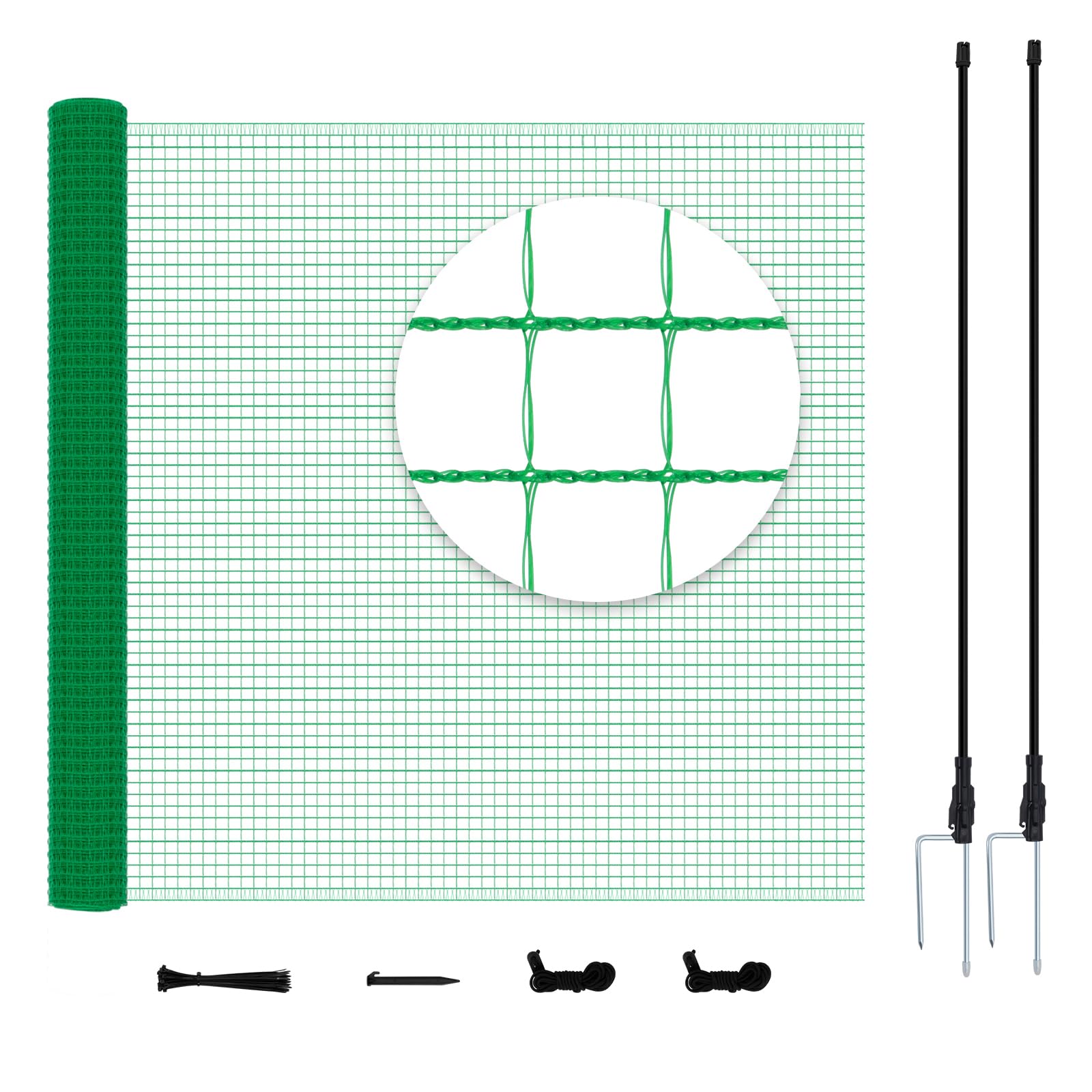 ["๐๐จ๐๐ฎ๐ฌ๐ญ๐๐ฌ ๐๐๐ญ๐๐ซ๐ข๐๐ฅใป๐๐๐ญ๐ญ๐๐ซ๐๐๐ฌ๐ญ & ๐๐ญ๐๐๐ข๐ฅ:This chicken fence is made of high-quality 53 g/mยฒ HDPE fabric with high density and is characterized by excellent tear resistance and elasticity It is corrosion-resistant, UV and weather resistant - ideal for long-term outdoor use","๐