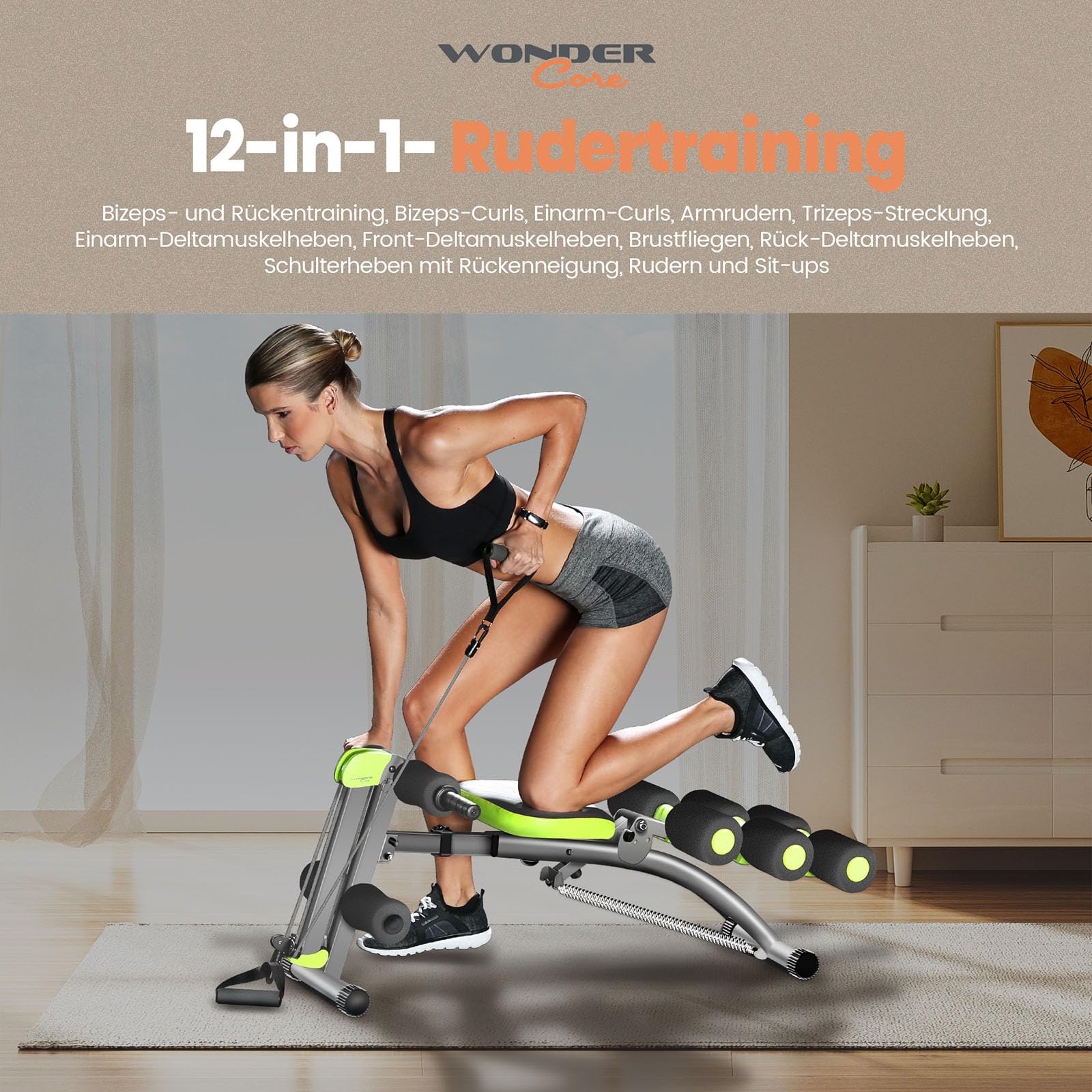 πͺ Patented 8-Roll Resistance Band System: Do rowing exercises, curl workouts, lifts, etc. to achieve the desired muscle-building results. If you really want to kick it up a notch, you can purchase the advanced resistance band options (Search for 'WONDER CORE II Rowing Set') for even more definition in size.