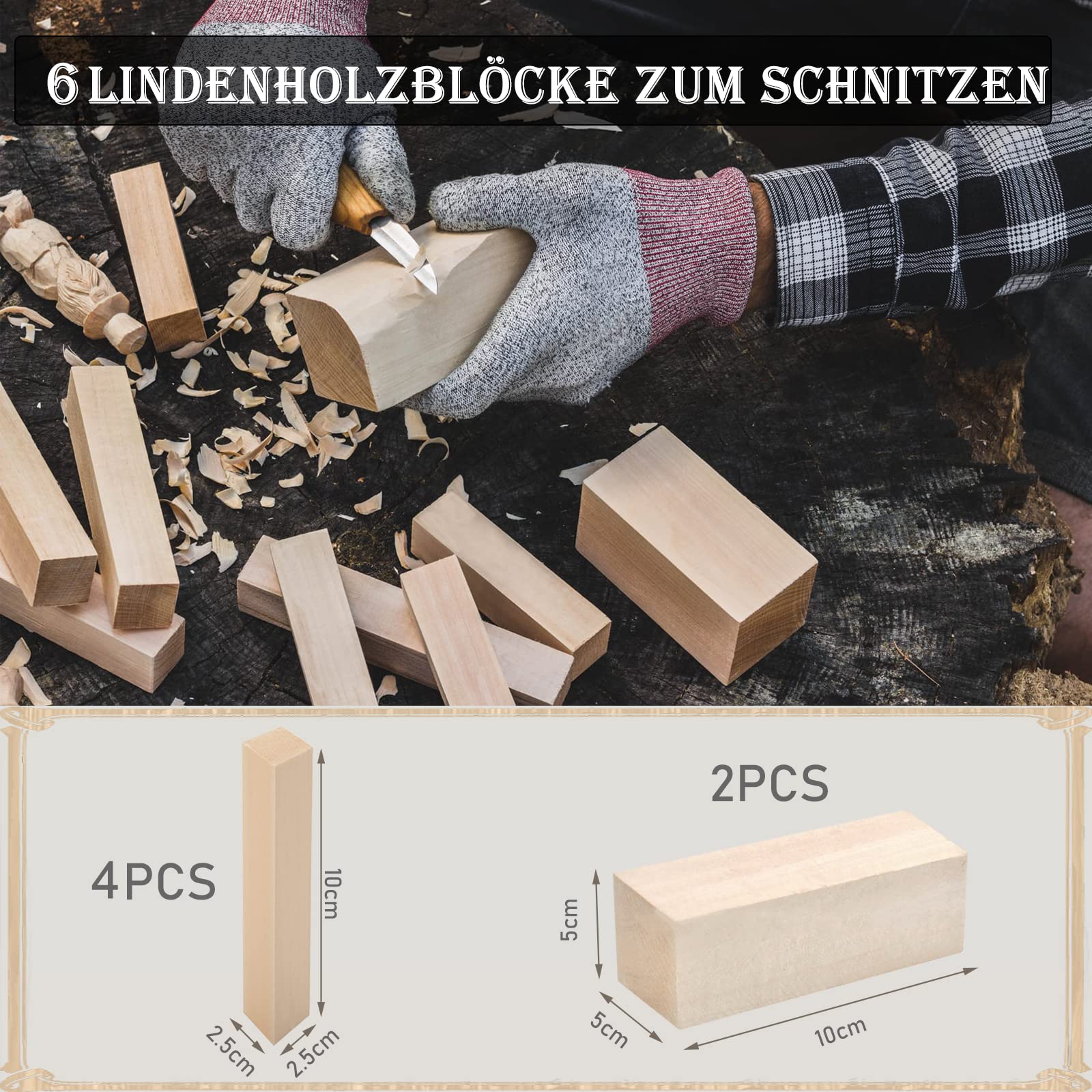 Wood Carving Tool Set, KAQ 32 in 1 Carving Kit with 15 Carving Knives, 6 Pieces of Lime Wood for Carving, Sharpening Stone, and cut-resistant gloves. Carving tool set for beginners and kids.