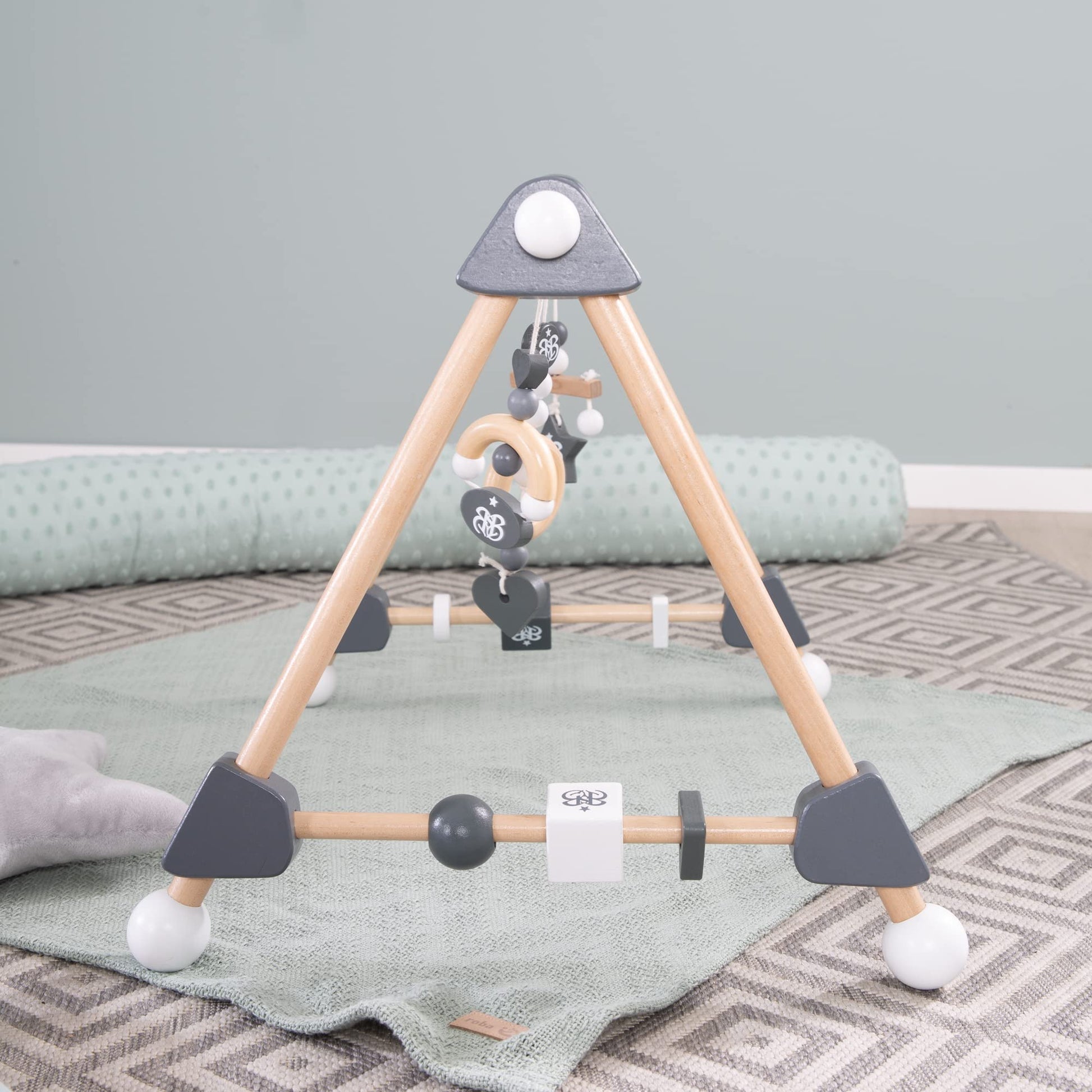 Wooden baby play gym - attachment set Rock Star Baby 3 - activity center for 3 months and up - Montessori toy - natural wood / anthracite, 1 piece (1 pack)