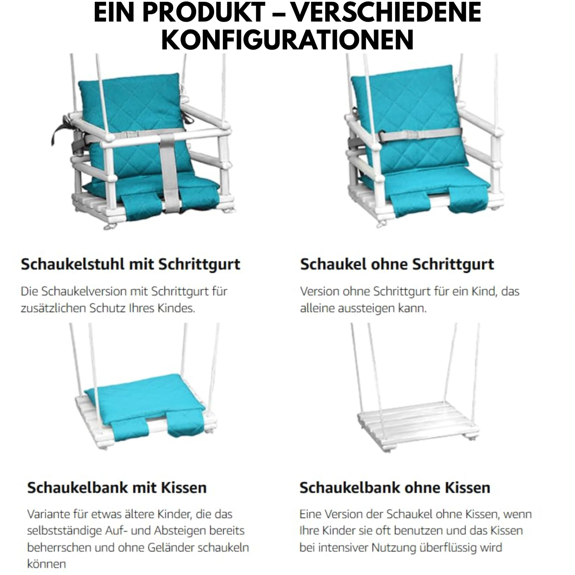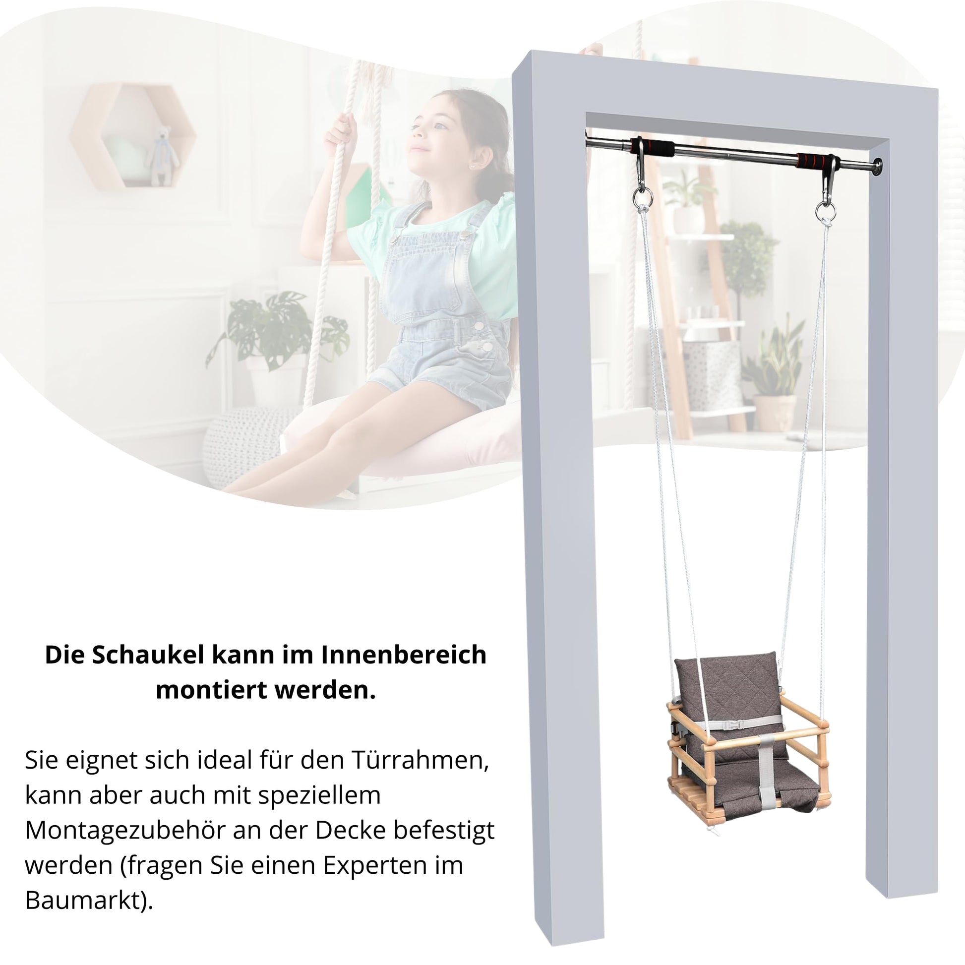 "Our indoor children's swing not only promises fun for the little ones but also a calming feeling for parents. The swing is ideal for children who can sit independently and does not strain the spine or joints. This maintains the child's natural position while swinging."]