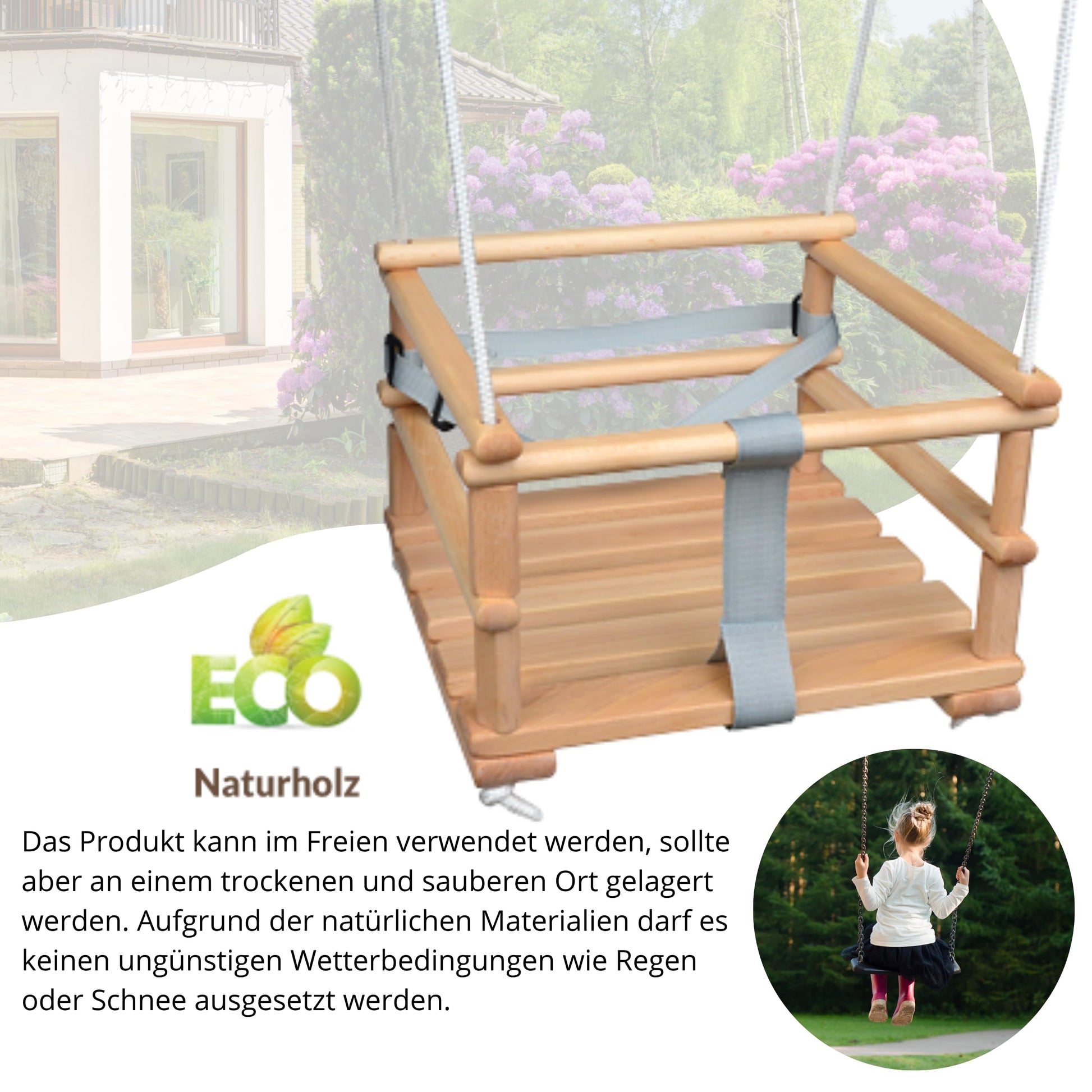 "Promotes healthy development - Our wooden swing activates various muscle groups, supporting the healthy physical development of your child. It improves motor skills, balance, and coordination.",