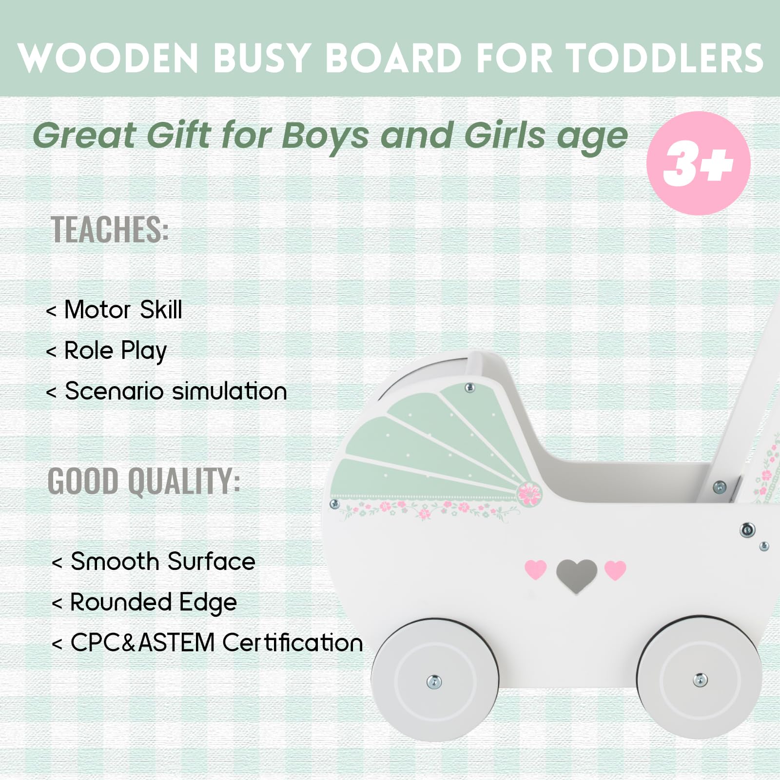 ["HIGH-QUALITY MATERIALS: Made from high-quality wood, rubber edges on the wheels to protect your delicate floors, and non-toxic colors, this children's toy is guaranteed to stand the test of time!","Walker with Large Toy Box: This baby activity walker comes with a large toy box. Your babies can push the walker with their favorite toys anywhere, encouraging them to walk. Kids will love this beautiful and exclusive design.","EASY MANEUVERING & WEIGHT CONTROL: The standing walker is the best choice to help babies stand independently. The wheels are easy for the baby to maneuver even on carpeted floors. The wheel block can prevent a sudden fall. The wheels roll smoothly and do not scratch the floor. Since it is a toy box, you can put something like books inside to adjust the weight for the baby according to its development and needs. This is a suitable baby walker or activity walker, a must-have wooden push toy.","GREAT GIFT: Whether you are looking for a nice gift idea for a baby shower or a 1st birthday, or you just want to surprise your little one with a fun, educational activity toy, this wooden walker is the perfect solution!","100% SATISFACTION GUARANTEE: We design each toy to the highest quality standards to promote the mind and heart. If you are not satisfied with our products, please contact us, and we will take care of your problem first."]