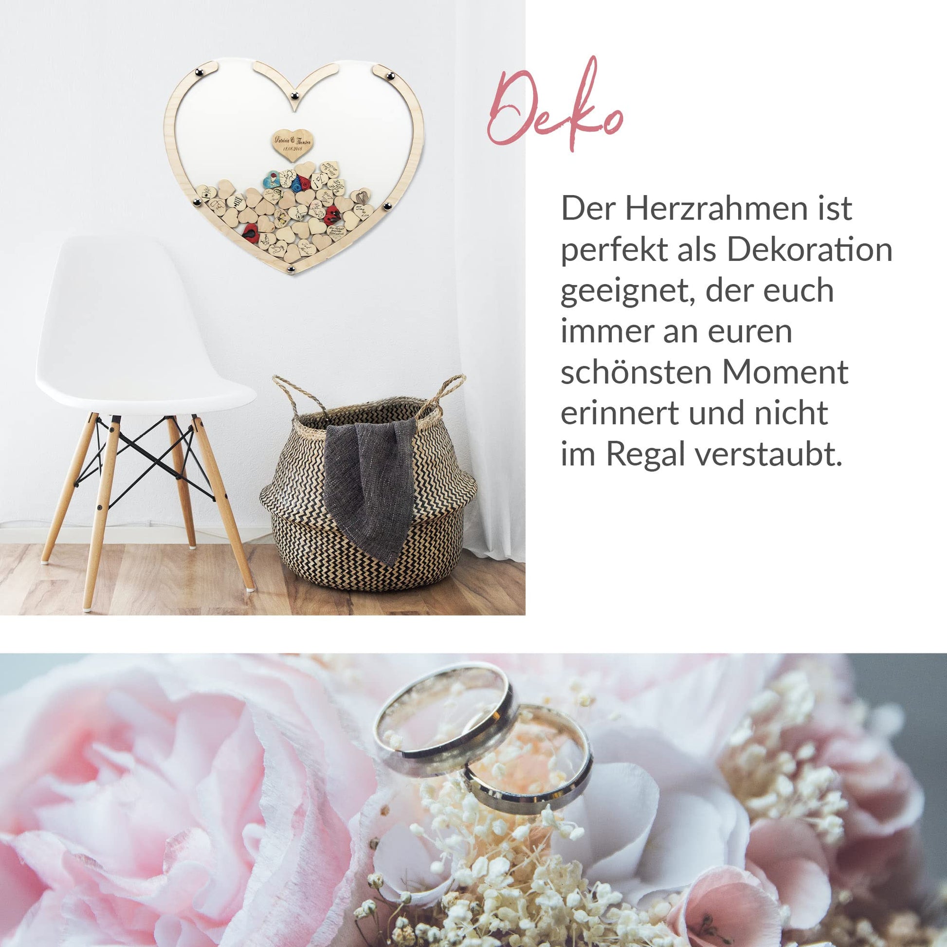"Wooden heart guest book personalized 50x42x1.5cm | includes 100 hearts for writing | Wedding guest book with acrylic glass | The unique eye-catcher Made in Germany!"