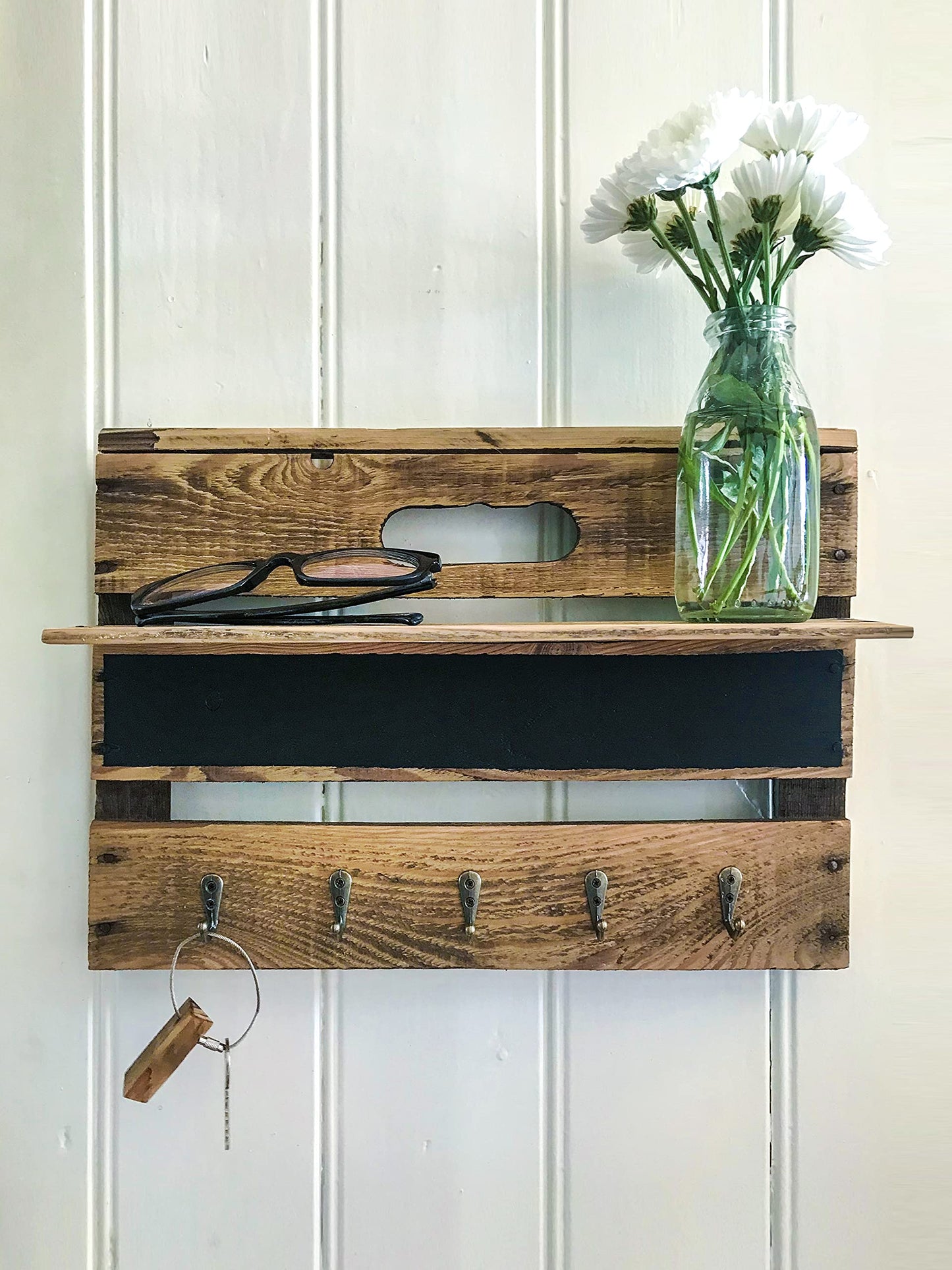 Wooden key rack WITH SHELF and chalk paint.