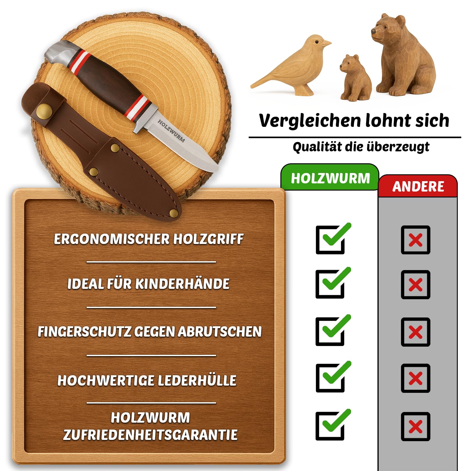Optimal sharpness - The children's knife comes ready to use. Carving with our carving tool can start immediately, allowing the first wooden artworks to be created.