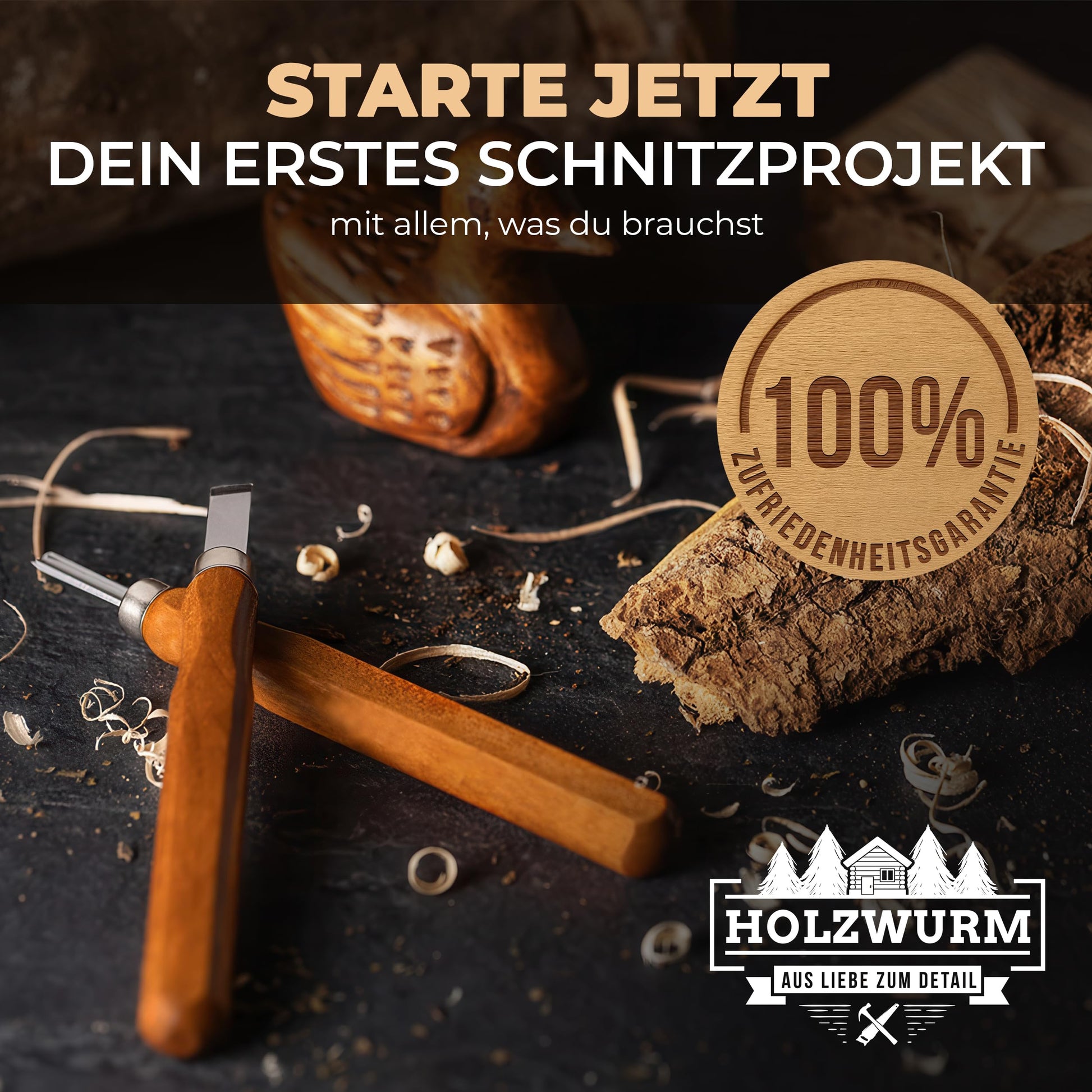 WOODWORM Wood Carving Tool Set - 17 pieces, including instructions for a carving project & E-book for beginners, pouch & sharpening stone, ideal carving knife set for beginners and professionals.