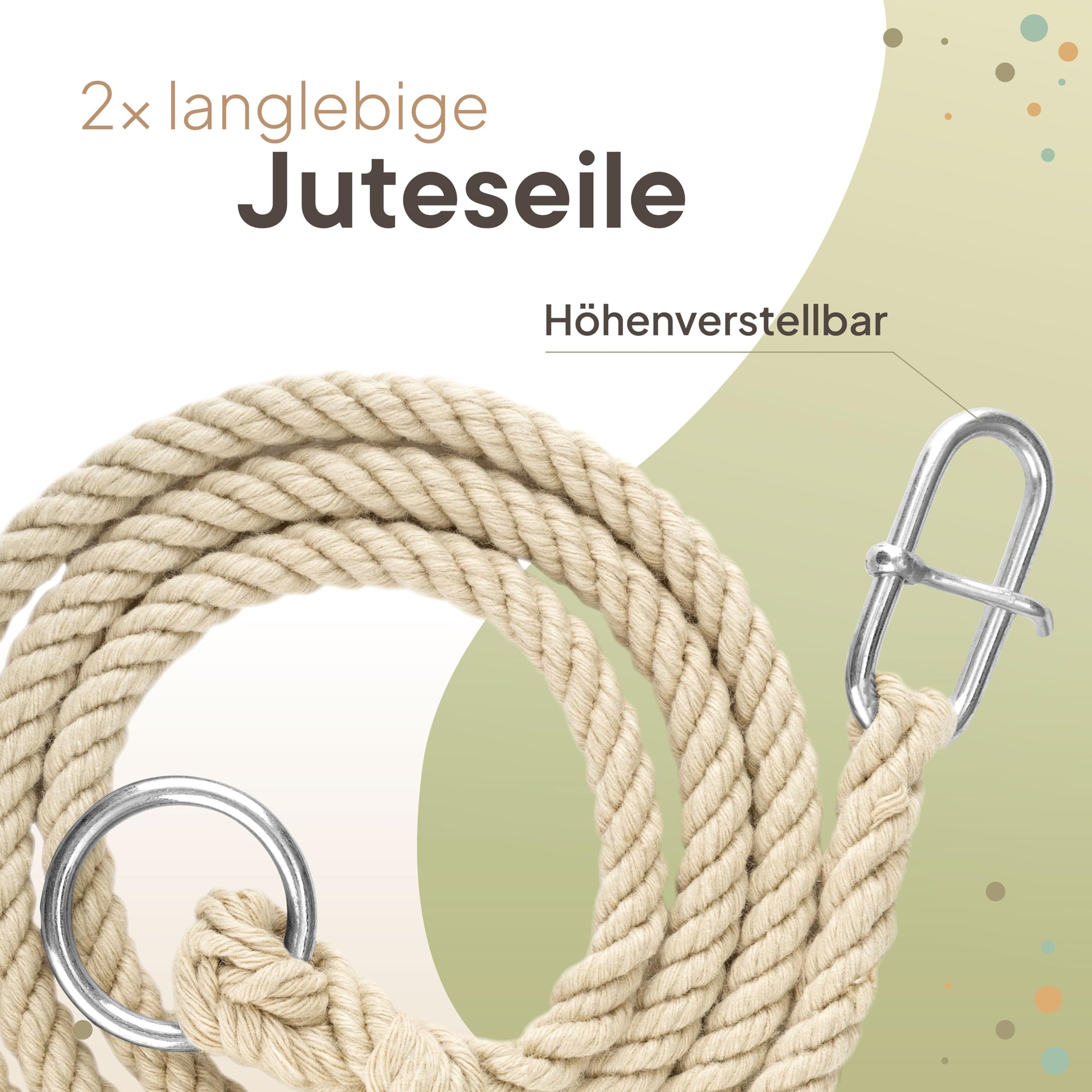 "Adjustable jute ropes: With the adjustable ropes made of natural jute, the gymnastic rings can be customized for both children and adults.",