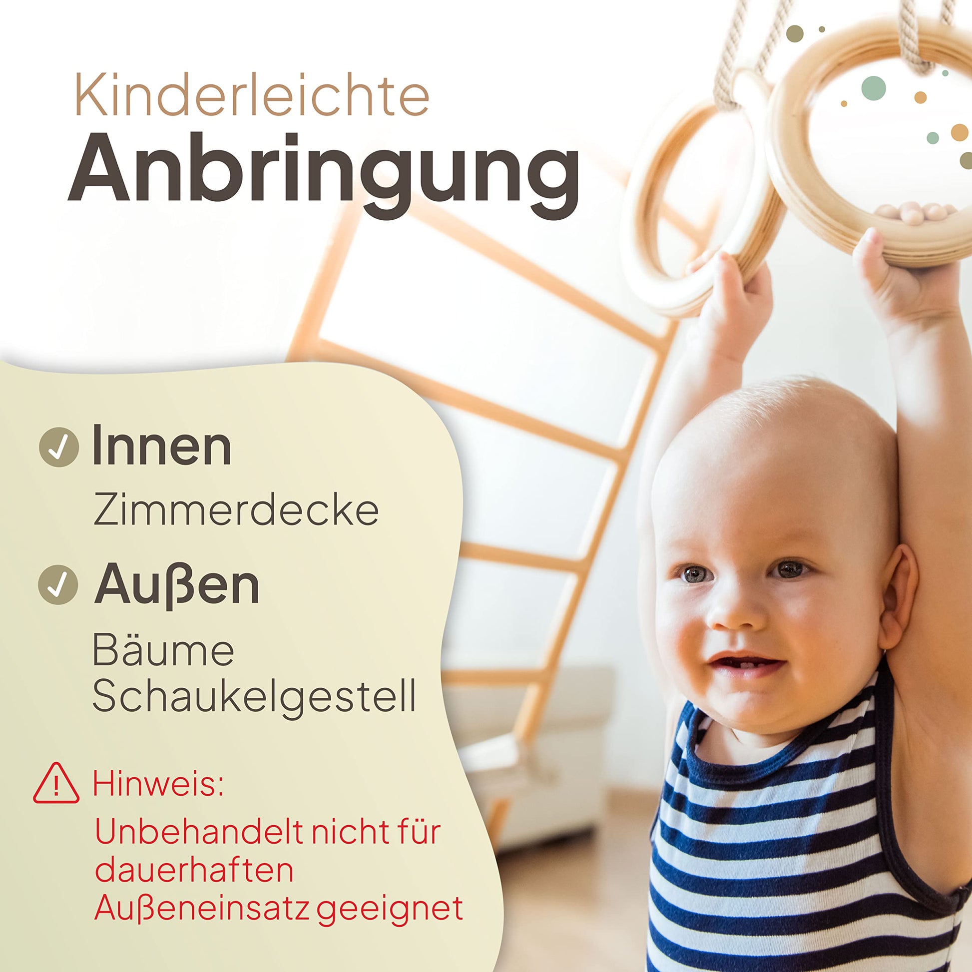 "Versatile use: Ideal for use in the children's room, garden, or playground - the gymnastic rings can be used indoors and outdoors with some limitations.",