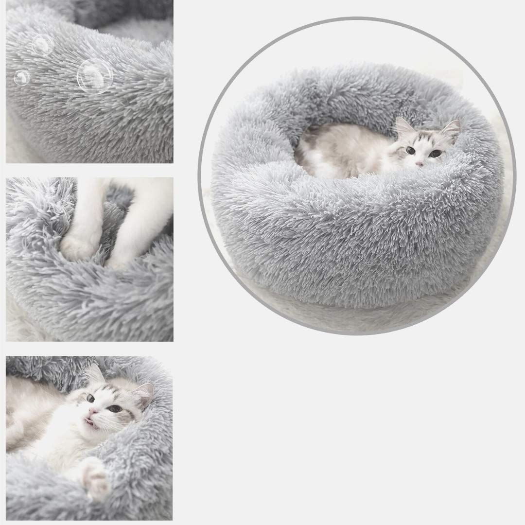 Wuudi bed for cat, dog cushion fluffy cat bed set with blanket, round cat bed plush dog bed 2 pieces soft warm pet bed + pet blanket for cats and small (light gray)
