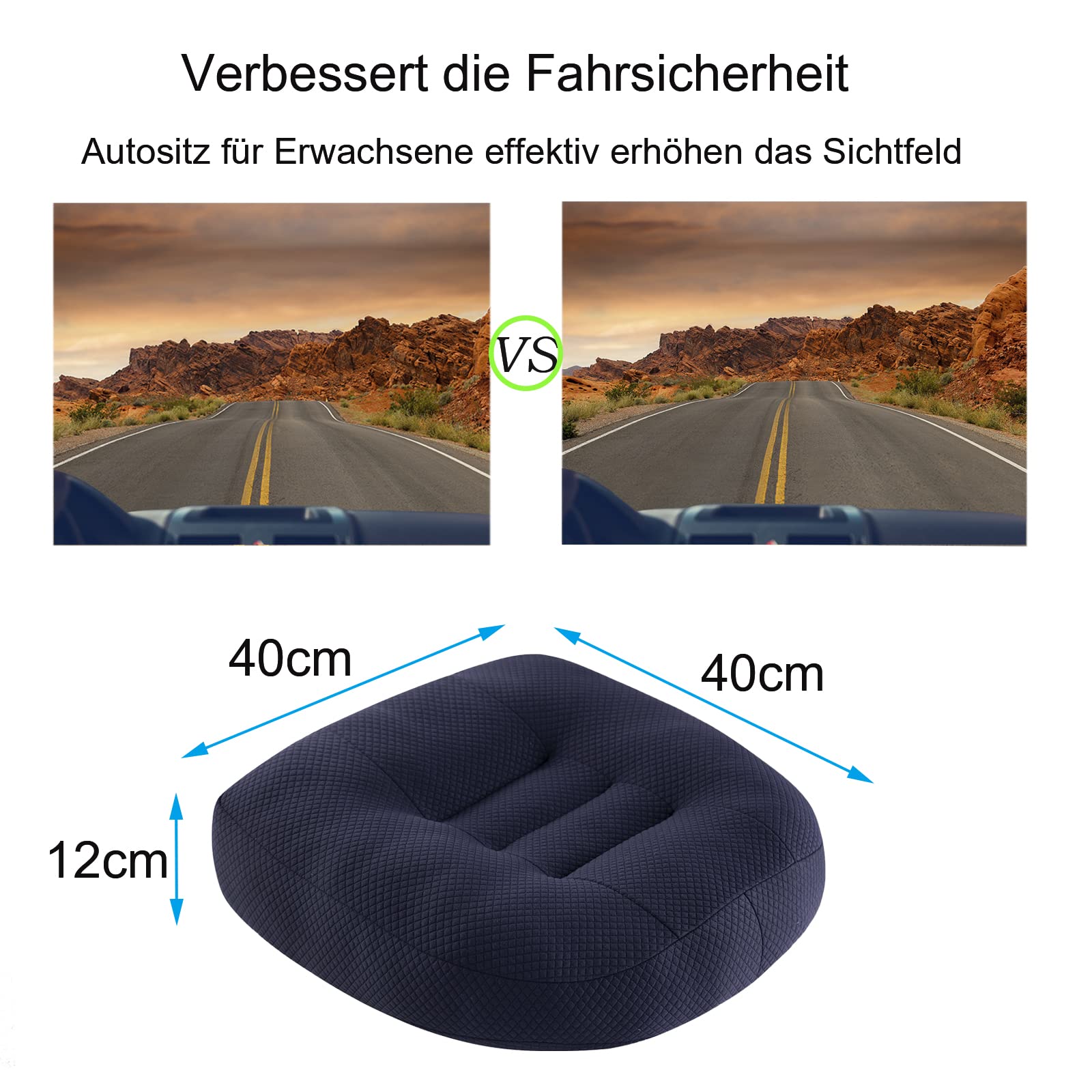 "Expand your field of vision Car seat cushion: If you need height to see better over the steering wheel or over the hood. When driving, the road ahead is not visible and the road conditions cannot be accurately judged from the rearview mirror? This is a perfect adult car seat cushion, specially designed for short people. Seat cushion curves are at the right height, enough to improve your view while driving and enhance driving safety."