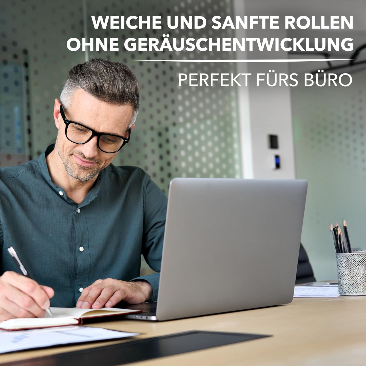 ["[Important Note] - Please determine the correct stem size to the millimeter before purchase! This saves a lot of time. These casters have a 10mm x 22mm stem. The stem of your chair should be smaller or equal to 10mm, never larger. Not suitable for the IKEA model \"RENBERGET\". They do not fit NitroConcepts chairs.","[Safety for all hard floors] - Protect your floor with our gentle yet highly durable polyurethane casters for your office chair. Our gentle casters leave no dark or black streaks on the floor. Perfect for tiles, parquet, laminate, wood, marble, granite, stone, concrete, or vinyl flooring","[Silent, Smooth, Durable] - Glide completely noiselessly on your office chair. Even in the evening in the home office, no one will be disturbed by your work. Perfect for gamers who like to play at night.","[For office chairs with 10mm x 22mm stems] - Suitable for example in IKEA chairs, and some Topstar models also require 10mm casters. (Note: many Topstar office chairs have 10mm bore, but there are exceptions with Topstar, so please measure before purchase)","[Design] - These casters will enhance your office chair because they have a unique and very modern design. The casters are unbraked."]