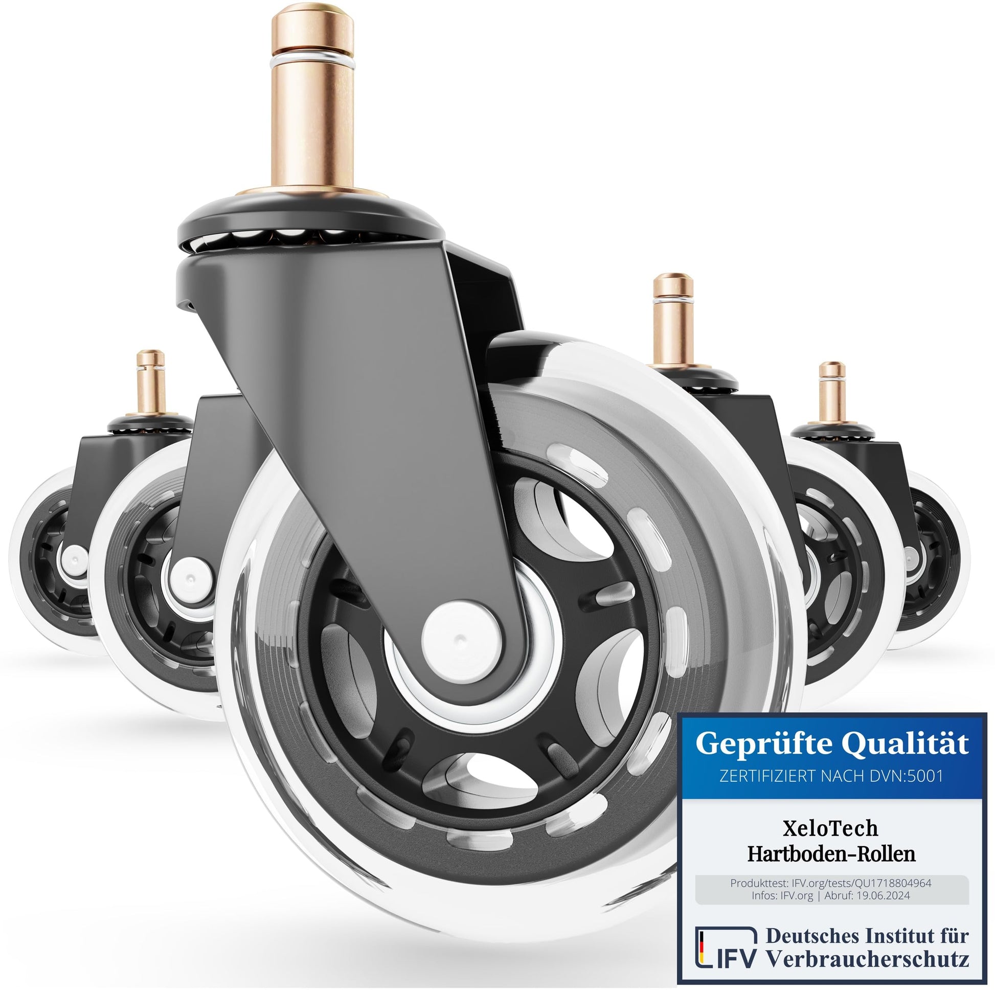 XeloTech 5-piece set of hard floor casters for IKEA office chair - 10mm x 22mm stem - Very quiet office chair casters - No more floor protection mat - No scratches on the floor with these premium casters.