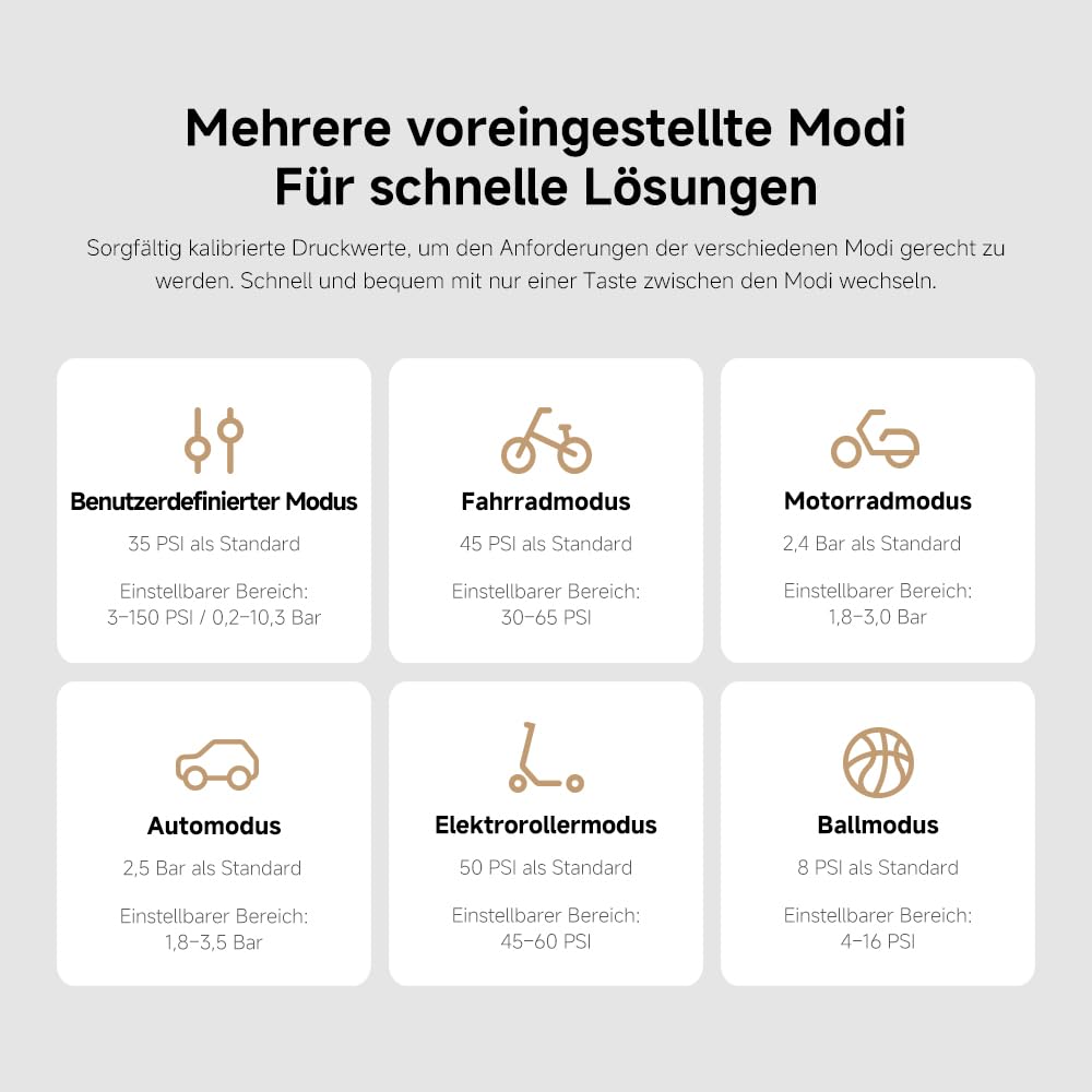 ["【Quick Inflation Rapid Pressure Increase in 45 Seconds】The compressor features 27mm large, high-precision cylinders made of a die-cast alloy for fast tire inflation. The powerful airflow easily meets different tire pressure requirements.","【Powerful Magnetic Motor Dynamic Performance】High output power and magnetic force ensure stable and reliable performance.","【Long Battery Life for Extended Standby Time Hassle-free Outdoor Use】The high-capacity lithium battery can inflate approximately 16 car tires on a full charge. Convenient for daily use without constant recharging.","【Multiple Preset Modes For Quick Solutions】Carefully calibrated pressure values to meet the requirements of various modes. Quickly and conveniently switch between modes with just one button.","【Real-time Tire Pressure Display Monitor the inflation process with a glance】No risk of over-inflation thanks to convenient monitoring."]]