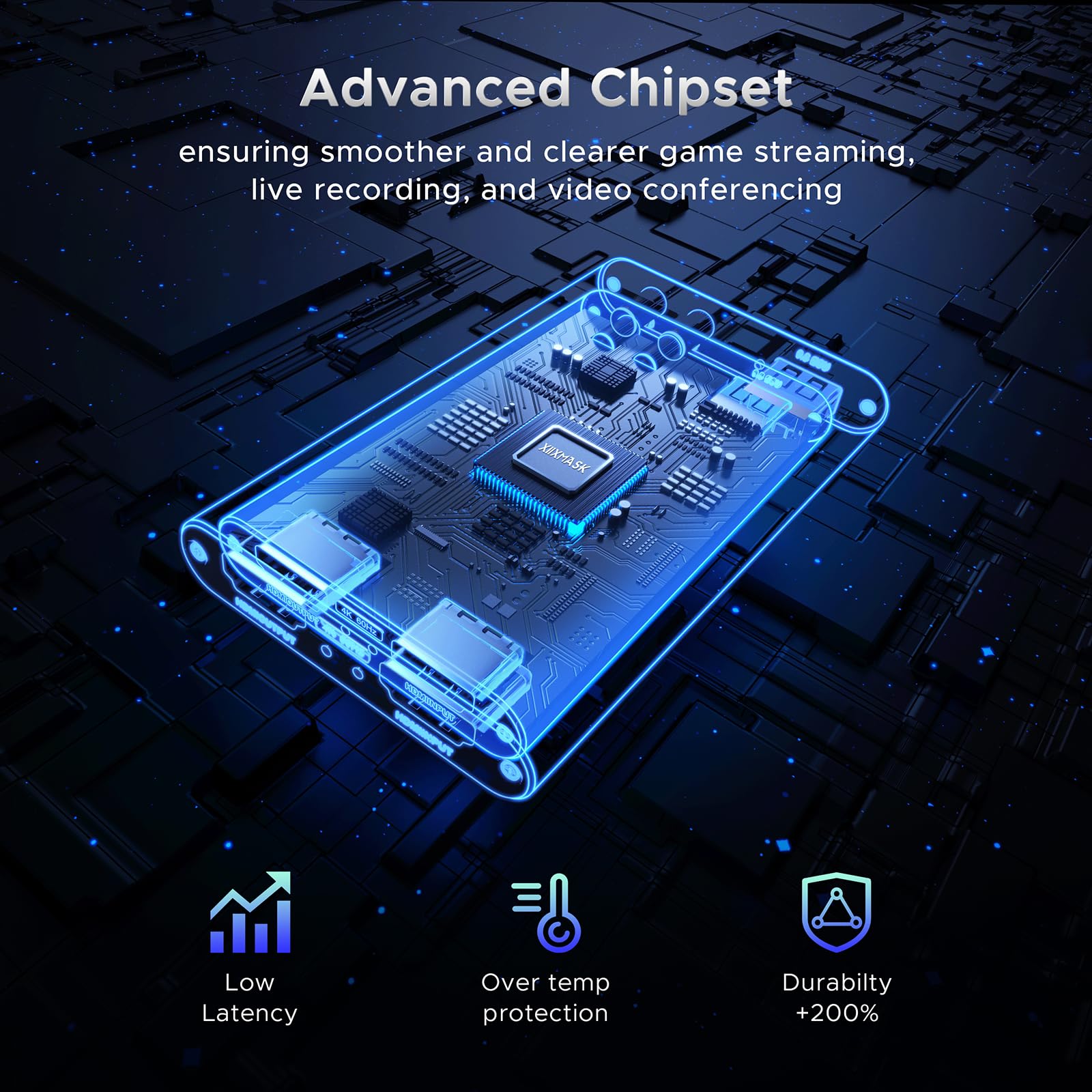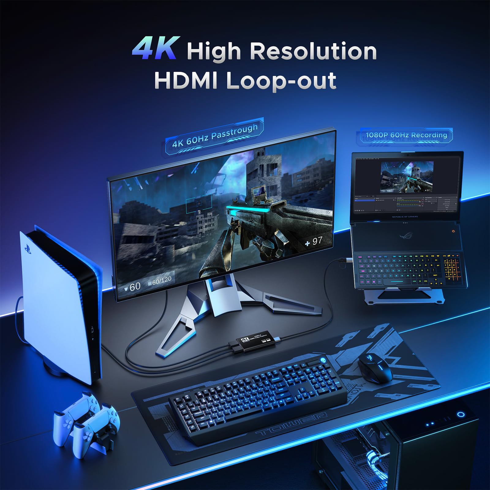 ["【4K Loop-out & 2K30 Capture】 This HDMI game capture card for switch comes with 5 ports. Faster transmission speed, better meet the needs of high frame rate video capture, support 4K 60HZ HDMI input and loop out up to 4K 60HZ, perfectly adapted to USB3.0 1080P 60fps/2K30fps video output. Support YUY2, easily meet the online capture, real-time recording, online meetings, live games and other functions",