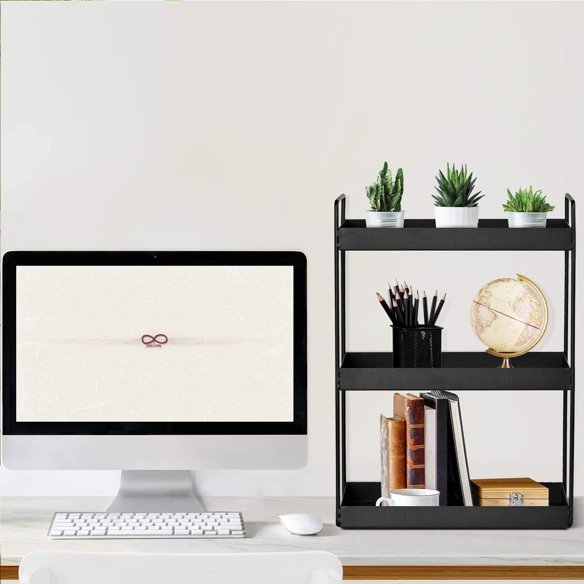 "Simple and Stylish Design: With Nordic design, the shelf is exquisitely electrostatically welded, easy to place, and long-lasting. The classic black color makes it a perfect addition to your home or office decor.