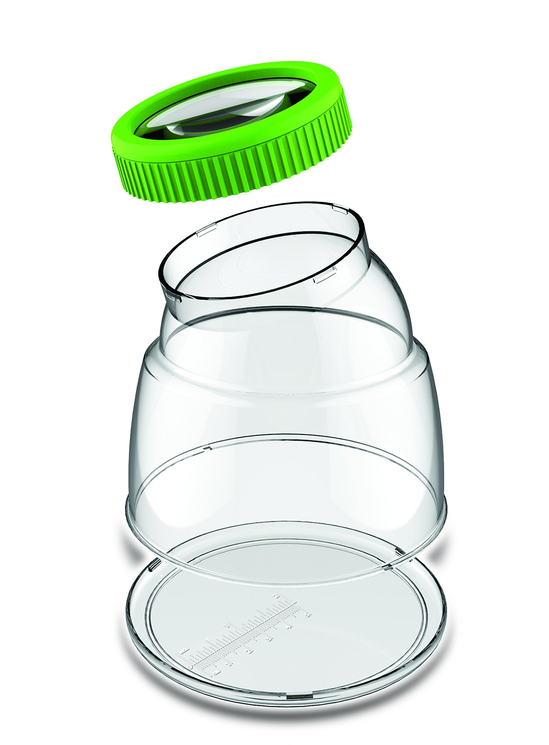 ["XL Insect Catching Set for young nature explorers: Insect box, net, tweezers, large magnifying glass, magnifying box, giant magnifying box, and magnifying booklet","The insect box is handy, sturdy, has a carrying handle, and a fine-mesh, transparent net for ventilation","Included in the set: a net, a large plastic tweezers, a large magnifying glass, a magnifying pot. The net can be used to catch flying insects, the large magnifying glass can be used to examine details accurately, the large tweezers are optimal for gripping snail shells or beetles with hard shells, and in the magnifying pot, the animals can be observed enlarged in peace.","Ventilated 5x Giant Beetle jar for enlarged observation of small creatures. Particularly large format (13.5cm height, 14cm diameter). Opens on both sides for easy access. A centimeter scale is engraved on the bottom. With this magnifying pot, children can observe the microcosm in macro view!","An additional magnifying booklet with many interesting information about insects and their habitat."]