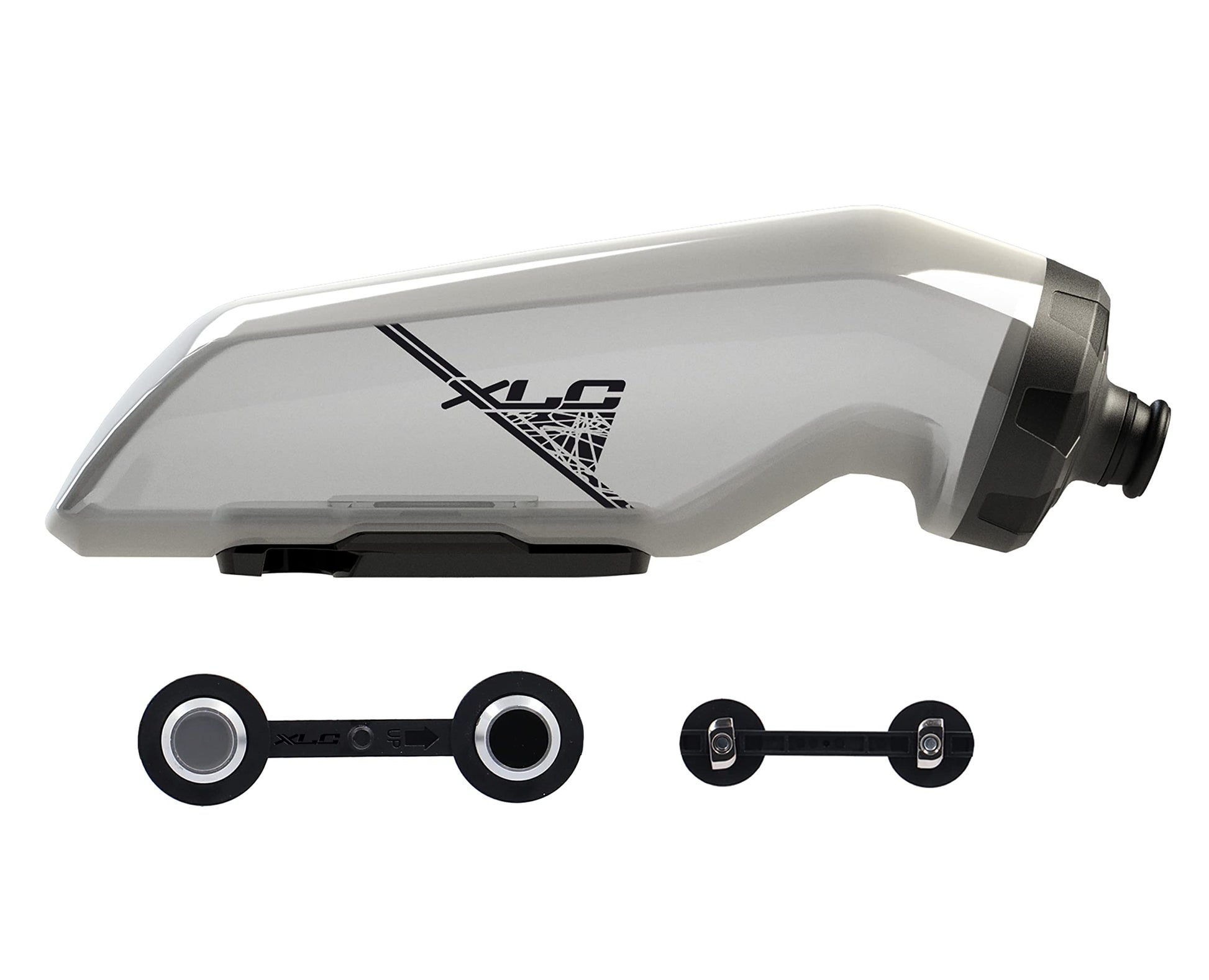 XLC Bicycle Water Bottle: The XLC MRS Set MR-S14 with adapter for existing MRS rail MY2021 on the bike, adapter for Fidlock, and water bottle, 650ml.