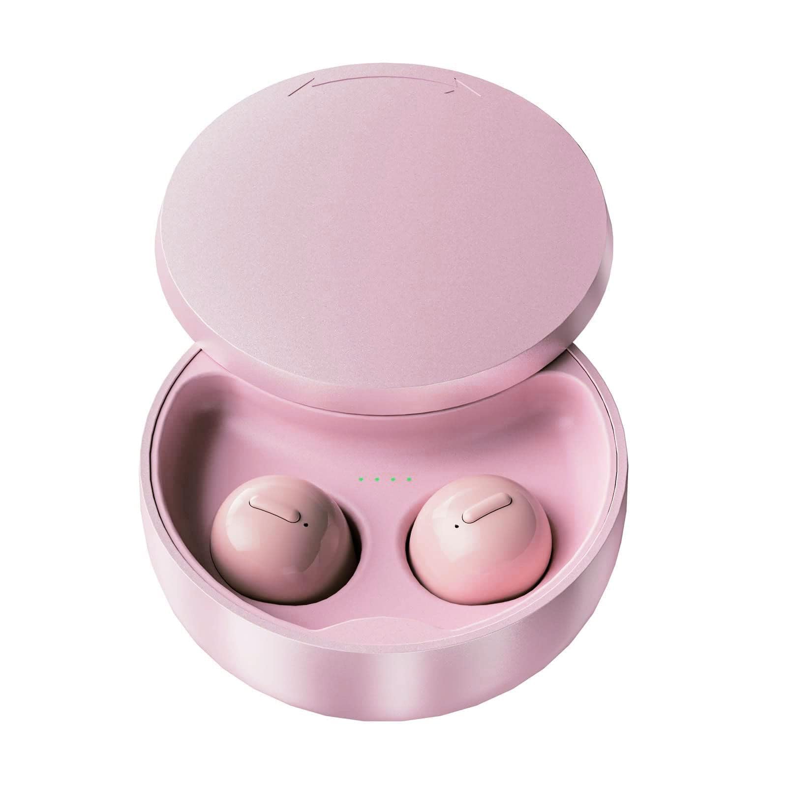 Xmenha Bluetooth Earphones Wireless Invisible Earbuds Mini in-Ear Waterproof Lightweight Long Battery Life HiFi Stereo Sound Headphones with Microphone for Work Sports Training Pink