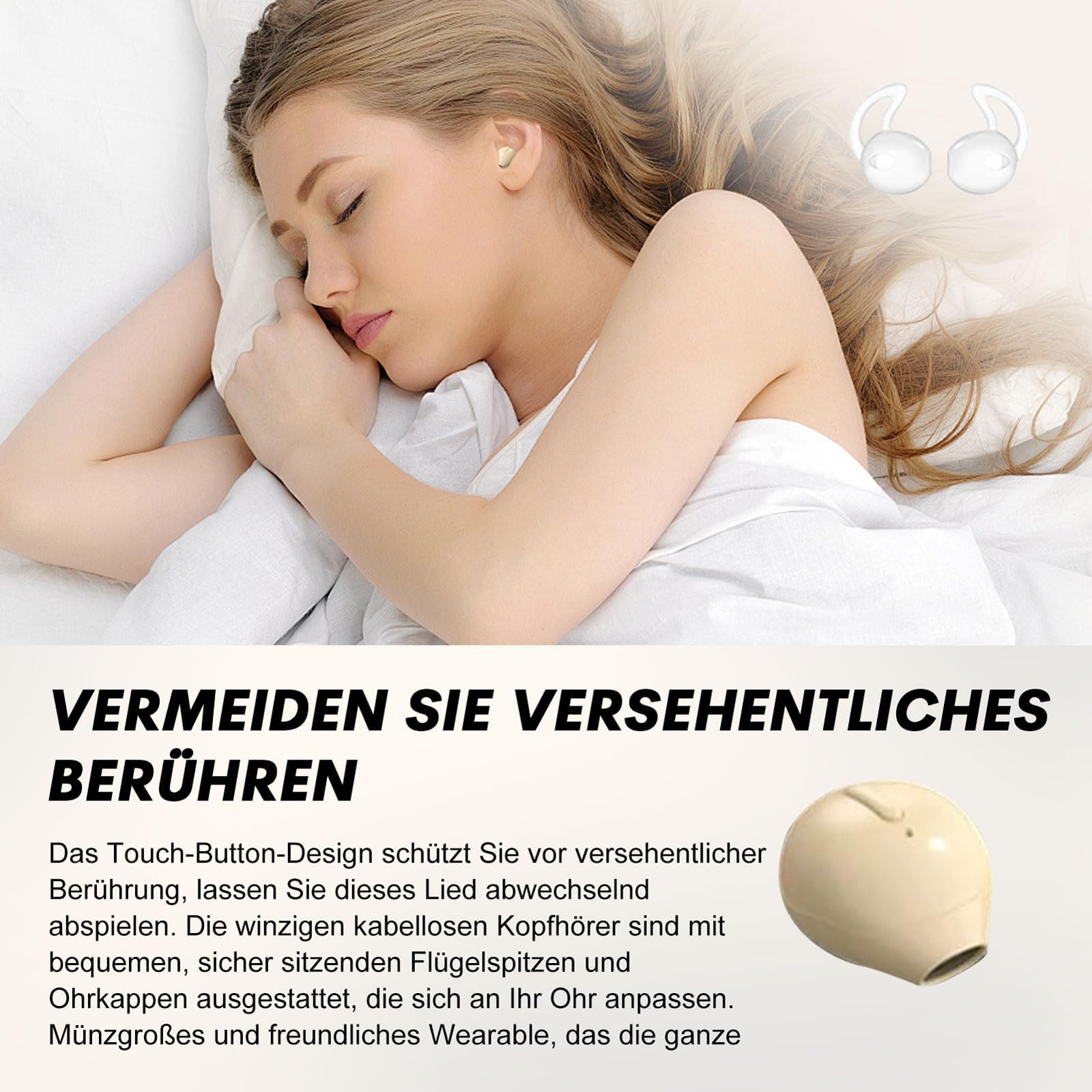 ["đ€Designed for Sleepingă Invisible and mini earbuds body design, if you don't want to be disturbed by others or need music while sleeping, then these sleep headphones are a good choice for you. The headset improves comfort design, when lying on the side, you will not have a foreign body sensation and it fits your ears all night long","đȘ¶ăNo Feeling to Weară The earphone adopts a semi-in-ear wearing structure, combined with ergonomic design to better fit the ear canal, and the weight is very light, weighing only 3.7g. The body is so small that it is almost hidden in the ear and cannot be noticed","đăHi-Fi Stereo Sound & ENC Noise Cancellingă The headphones are equipped with HiFi stereo sound and dynamic graphite composite diaphragm coil, so the sound of the earphones is soft and natural, bright and transparent, the music is purer, the sense of hearing is more sensitive, and the details are richer. The microphone reduces noise, even in noisy environments, to make calls clearer or create a quiet environment during sleep or work","đăBluetooth 5.0 & Clear Callă Wireless headphones with Bluetooth 5.1 chips ensure a more stable connection, faster transmission speed, and stronger signal. The headset uses intelligent AI noise reduction, monitors the noises around you and instantly generates the opposite signal to reduce background noise, even when making calls in noisy outdoor areas, you can hear clear sounds","đăLong Battery Life & Great Giftă The sleep earbuds can listen to songs for 6-7 hours on a single full charge, and the portable charging case provides an additional 4-5 times to power up these invisible earbuds. It is tiny for people with small ear canals to be a birthday gift"]