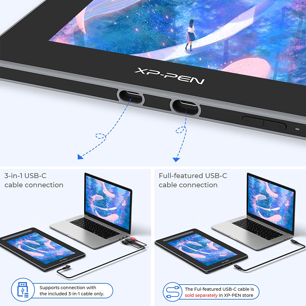 ["X3 Battery-free Pen: The pen of the Artist 12 2nd Generation Graphic Tablet comes with an X3 Smart Chip integrated. The pen with Smart Chip is much more sensitive, natural, and durable. This Artist 12 2nd Generation Pen Display will dramatically improve your experience, provide a pen-like feel, and allow you to explore your new creative world. In addition, it has 8192 levels of pressure sensitivity and supports 60 degrees of tilt detection.", "♚Fully-laminated Display with 127% sRGB Color Space: With a large color space of 127% sRGB, this Artist 12 2nd Generation Drawing Tablet offers a vibrant visual experience with brilliant colors and fine details, even in dark nights. The full lamination of the pen display minimizes parallax and enhances accuracy for a natural drawing experience.", "♚Easy and Fast Connection: There are 2 USB-C ports on the side of the Artist 12 2nd Generation Graphic Display. The top one is for the USB-C to USB-C cable, the bottom one is for the 3-in-1 cable. It provides different connection options and ensures a clean cable connection. (USB-C to USB-C is optional and not included.)", "♚Comprehensive Compatibility: The Artist 12 (2nd Generation) Graphic Monitor works with Windows, Mac OS X, Chrome OS, Linux, and Android. Unleash your creativity with the new Artist. The Artist 12 (2nd Generation) Graphics Tablet with Display is also compatible with various popular software applications for digital drawing, such as Adobe Photoshop, Illustrator, SAI, CDR, GIMP, Krita, and MediBang.", "♚Four Colors to Choose From: The Artist 12 2nd Generation Pen Display is available in four colors. Choose your color, personalize your style, and showcase your unique creativity. With 6 customizable shortcut keys, you can quickly access certain functions to streamline your workflow and increase your productivity."]