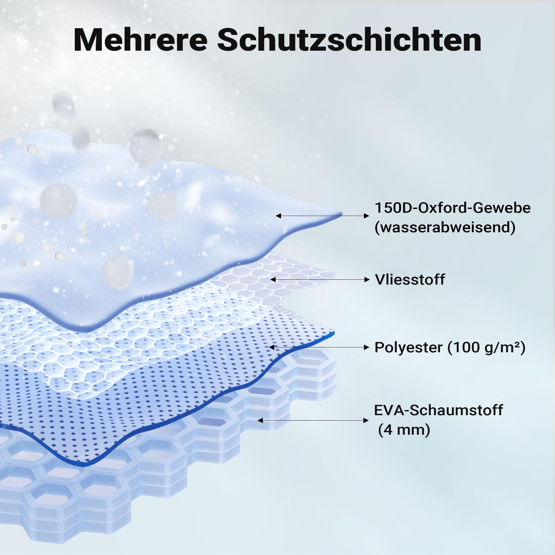 "Protects against rain, snow, and hail - Top made of three layers of waterproof fabric, EVA foam, and paint-friendly fleece. Sides made of tear-resistant 150D Oxford polyester.",