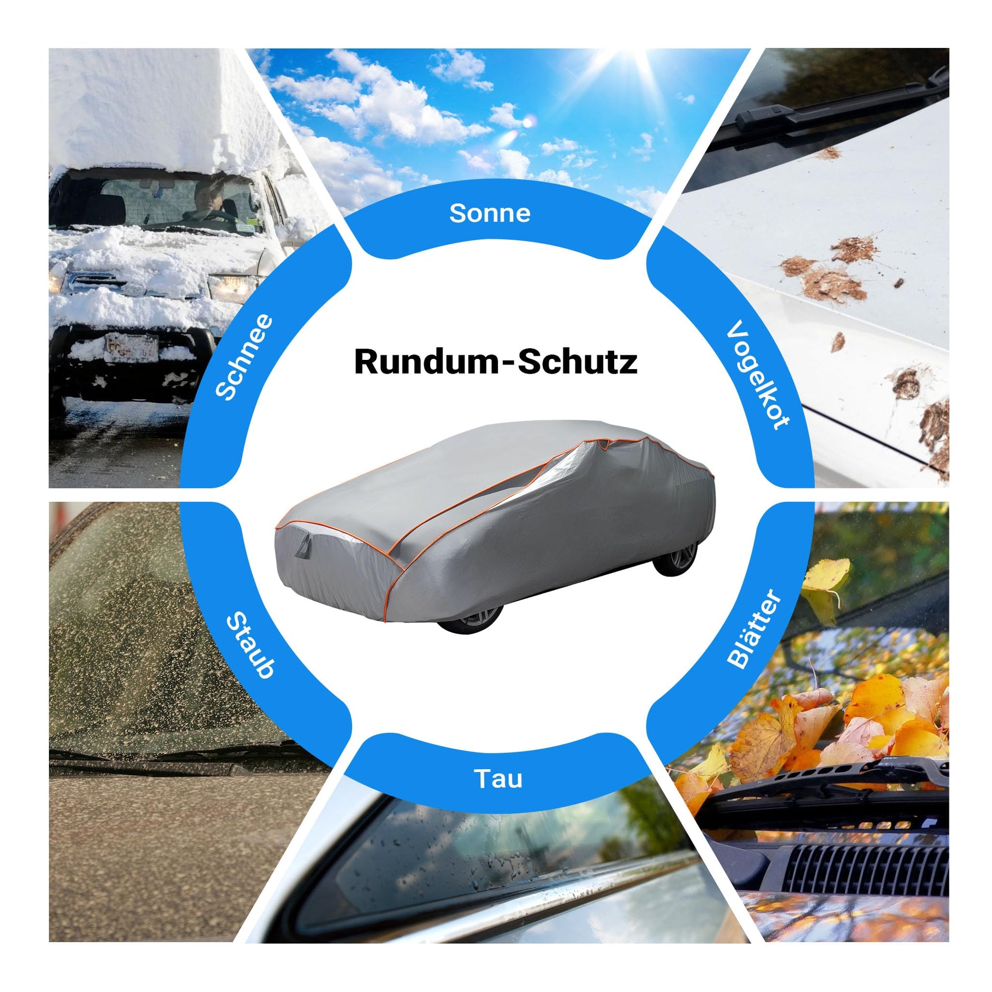 ["Protection in all weather - The car cover in size L (482 x 178 x 119 cm) provides comprehensive protection for your vehicle in all weather conditions - Ideal for those without a garage.",