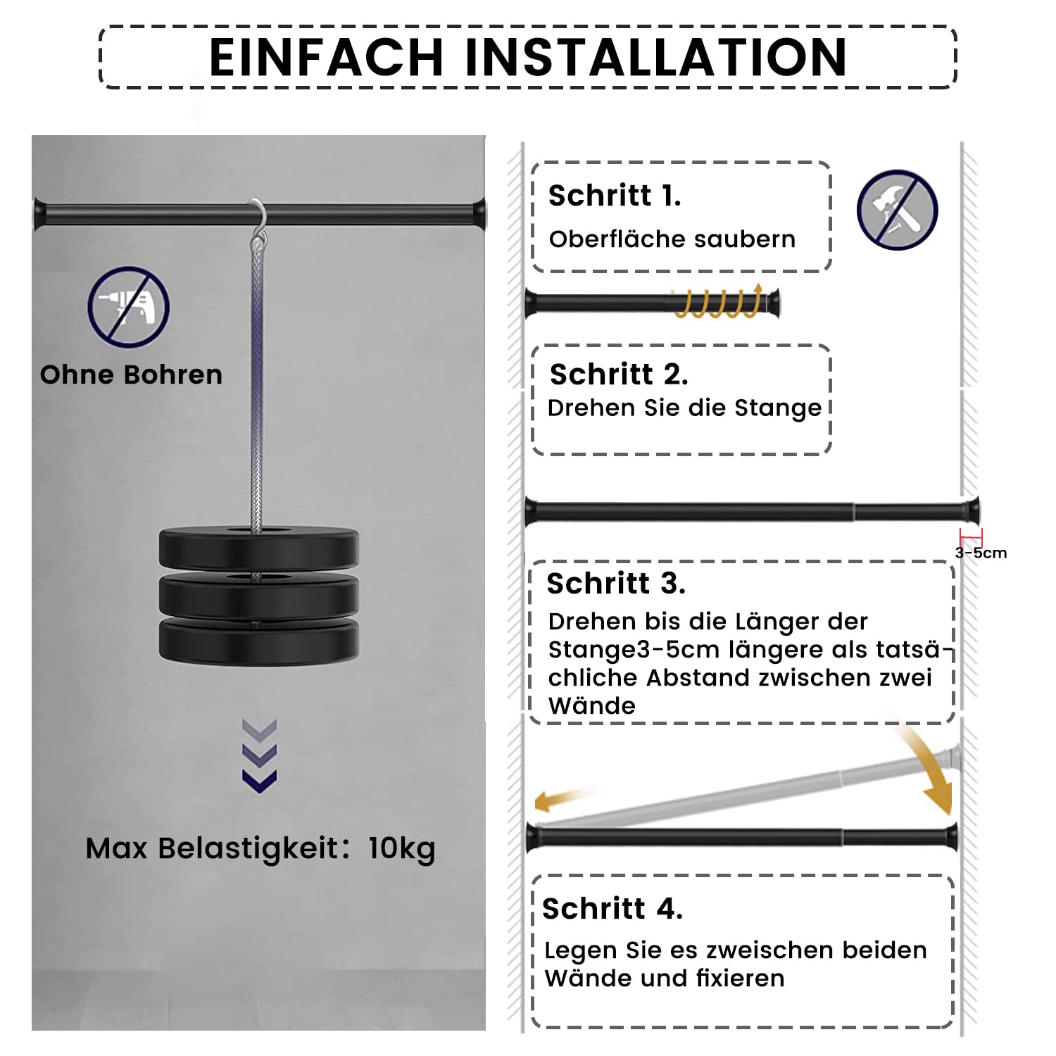 "REINFORCED STABILITY - Thanks to non-slip rubber cap, sturdy strong inner spring, and thick tube body, this tension rod increases stability. It can carry more than 10 kg"